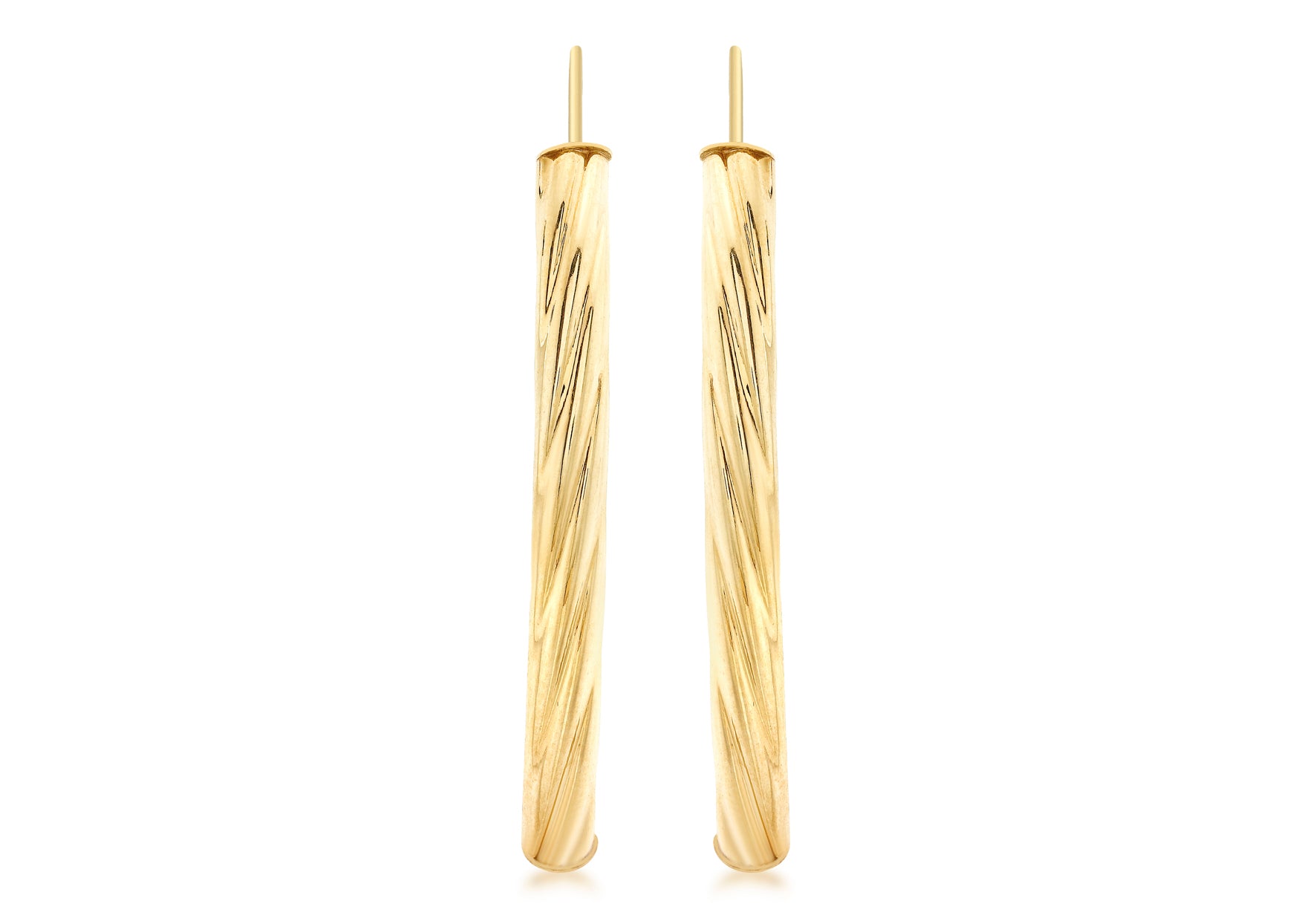 9ct Yellow Gold Twist Bar Drop Earrings Width: 4mm; Height: 40mm; Fitting: Hook; Style: Drop Metal Colour: Yellow Metal: 9ct Gold