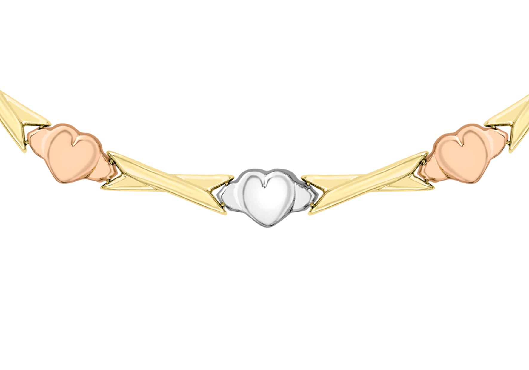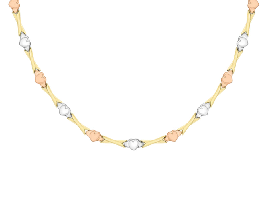 9ct 3-Tone Gold Hearts and Kisses Links Necklace