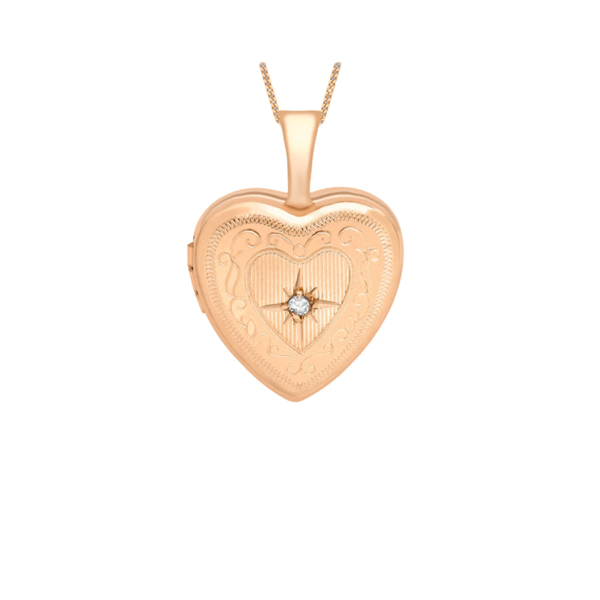 9ct Rose Gold 0.01ct Diamond Set Etched Heart Locket