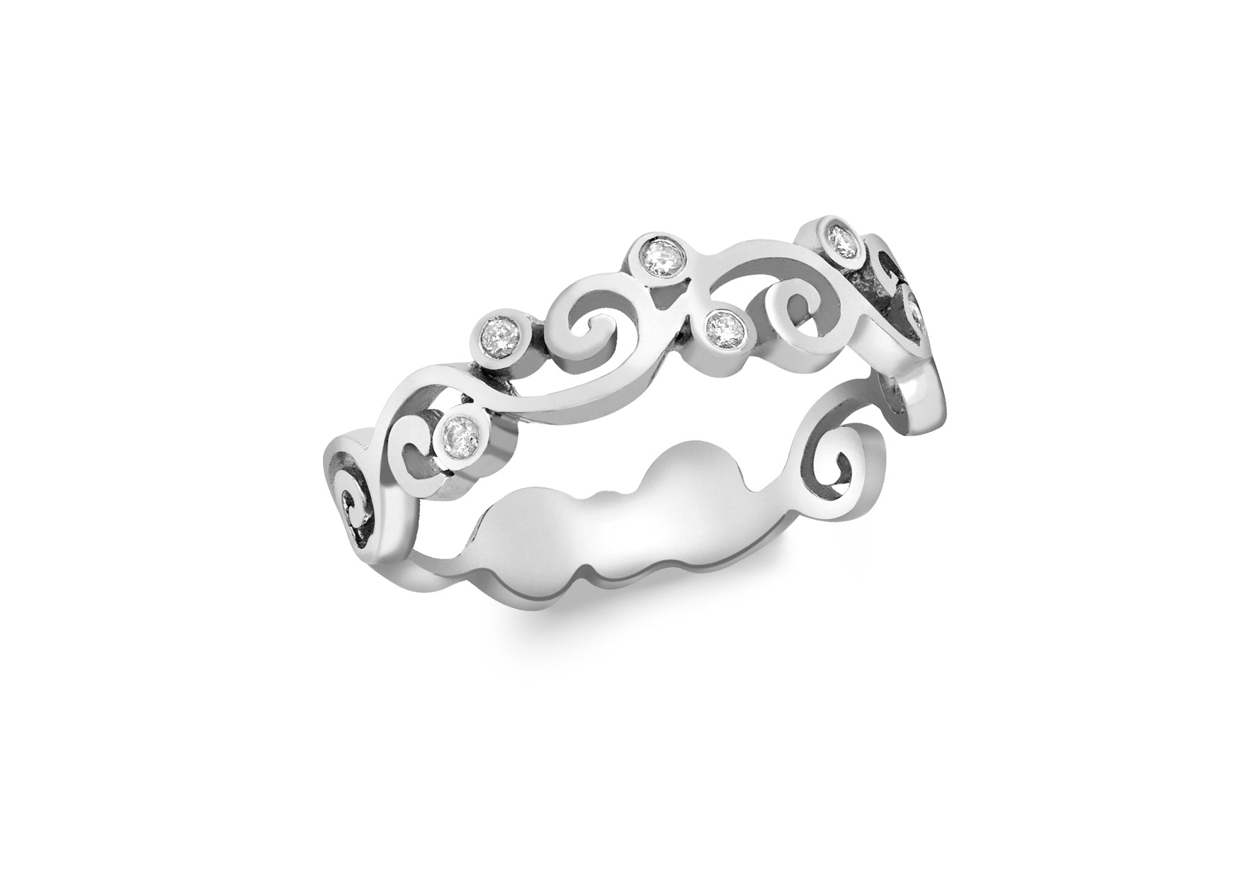 9ct White Gold 0.05ct Filigree Diamond Band Ring