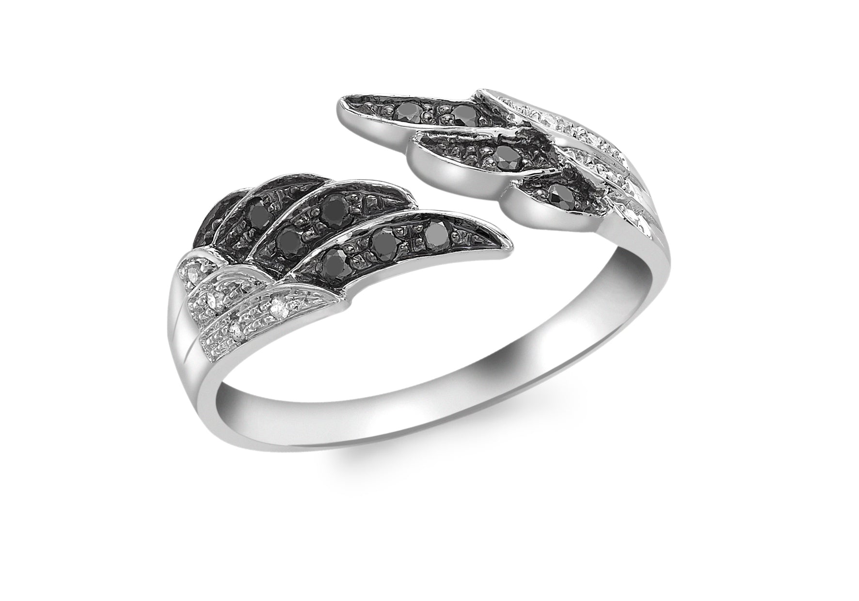 9ct White Gold 0.19ct Black and White Diamond Angel Wing Ring