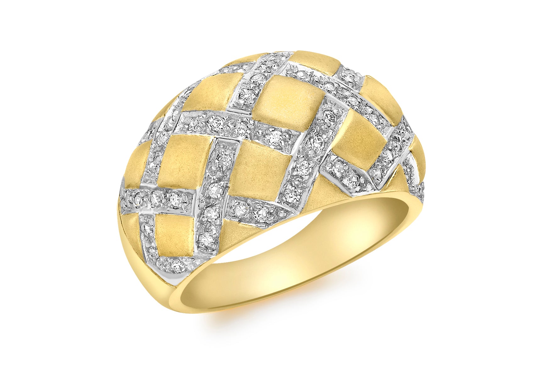 A refined study in structure and light, this ring features a captivating latticework design, each segment precisely formed and softly brushed for a satin finish. The openwork pattern creates a rhythmic geometry, brought to life by 0.32ct of round brilliant-cut diamonds nestled within the setting.