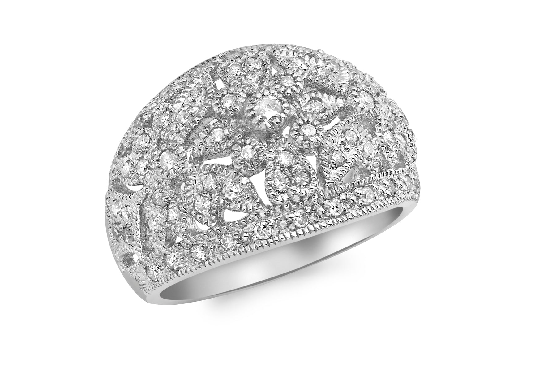 9ct White Gold 0.55ct Diamond Filigre Dome Ring