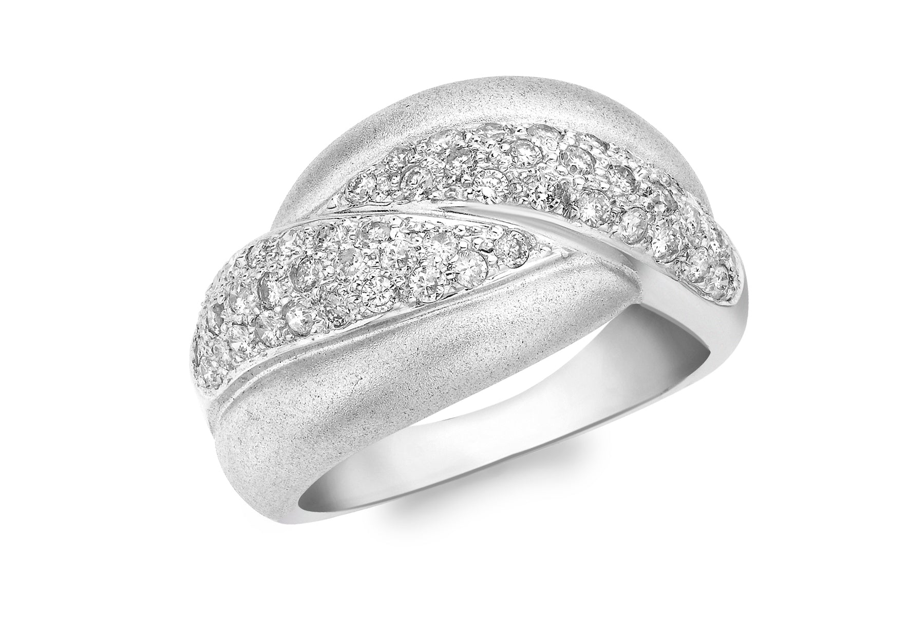 9ct White Gold 0.60ct Pave Set Diamond Crossover Satin Ring
