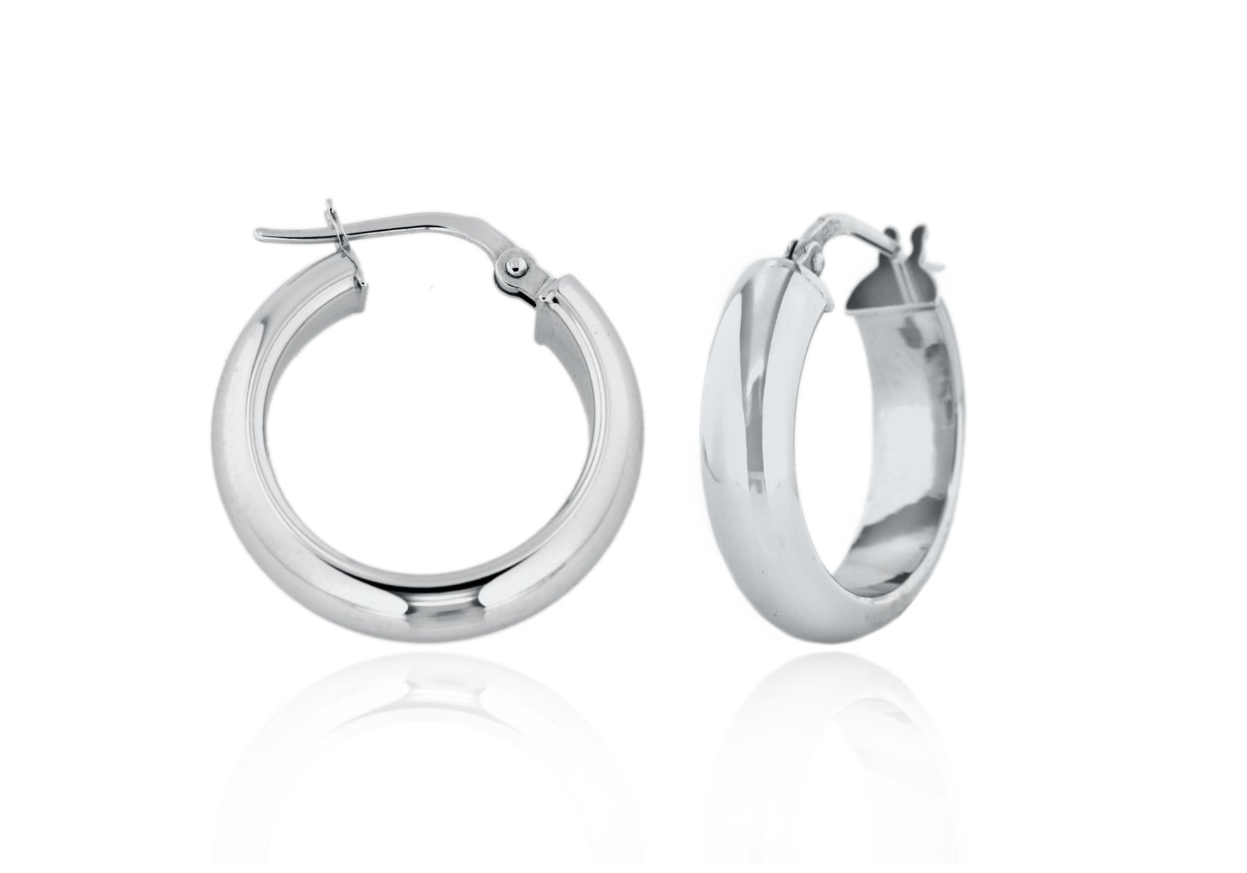 Details: 5mm Thick Diameter: 19mm Fitting: Hinged Post Style: Creole Product Type: Earrings Metal Colour: White Metal: 9ct Gold