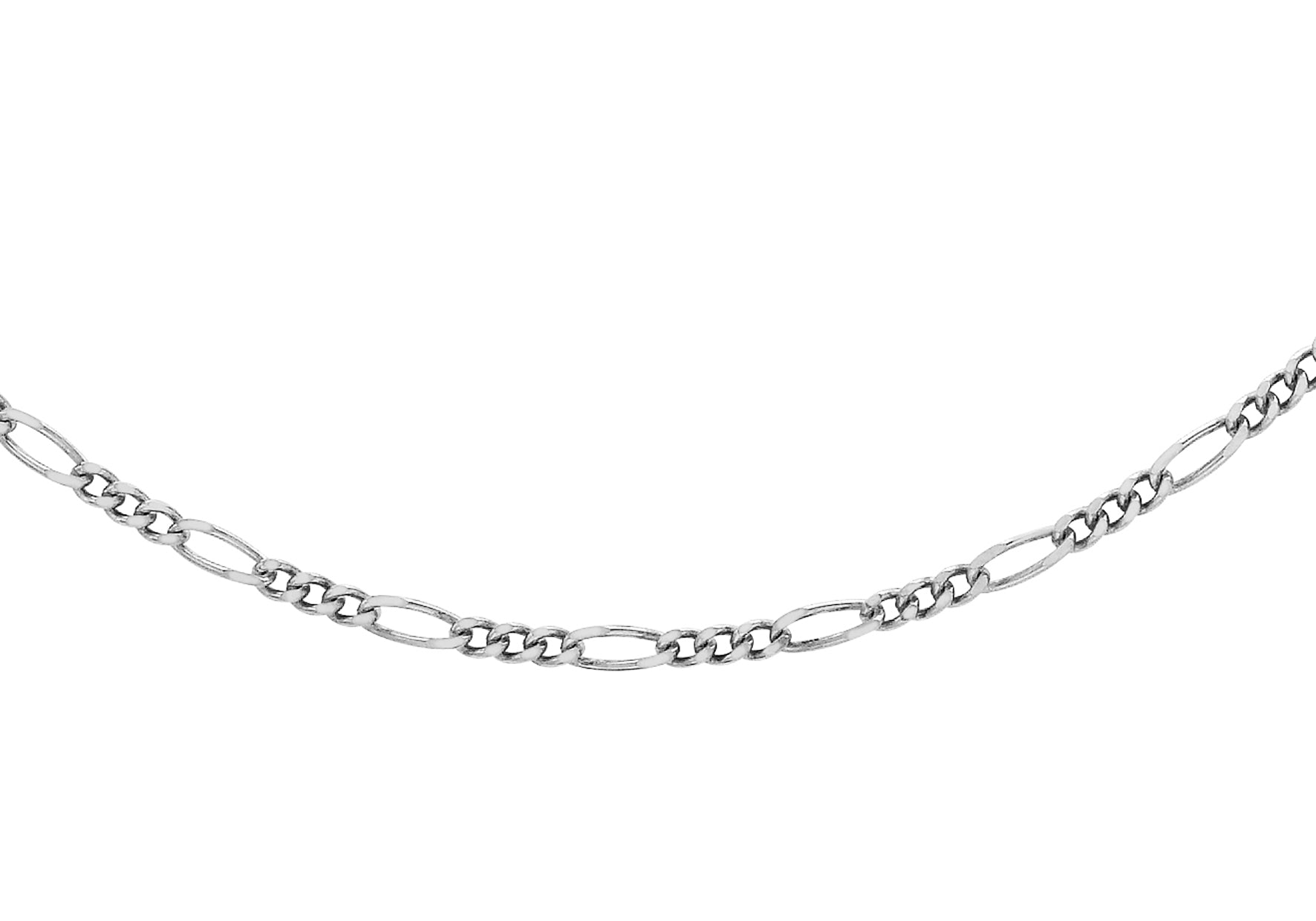 Crafted in luminous fine white gold, this diamond-cut Figaro chain brings a refined twist to a classic silhouette. The alternating pattern of short and elongated links is precision-finished with diamond-cut detailing, giving each facet a crisp brilliance and subtle texture.