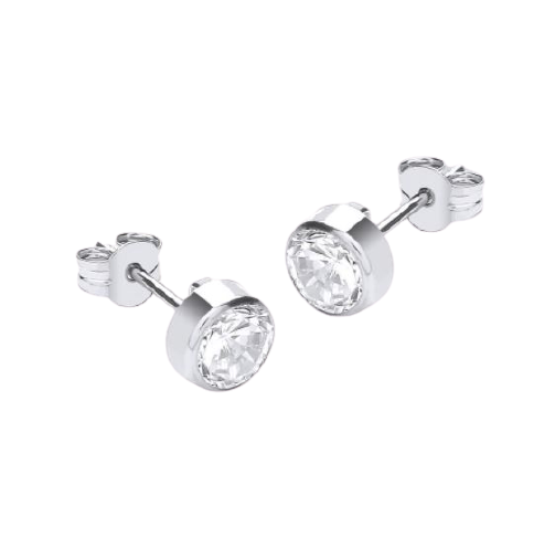 Diameter: 5mm Finish: Polished Fitting: Post Setting: Rubover Stone Details: 2 x 4mm Round White CZs Style: Stud Product Type: Earrings Metal Colour: White Metal: 9ct Gold