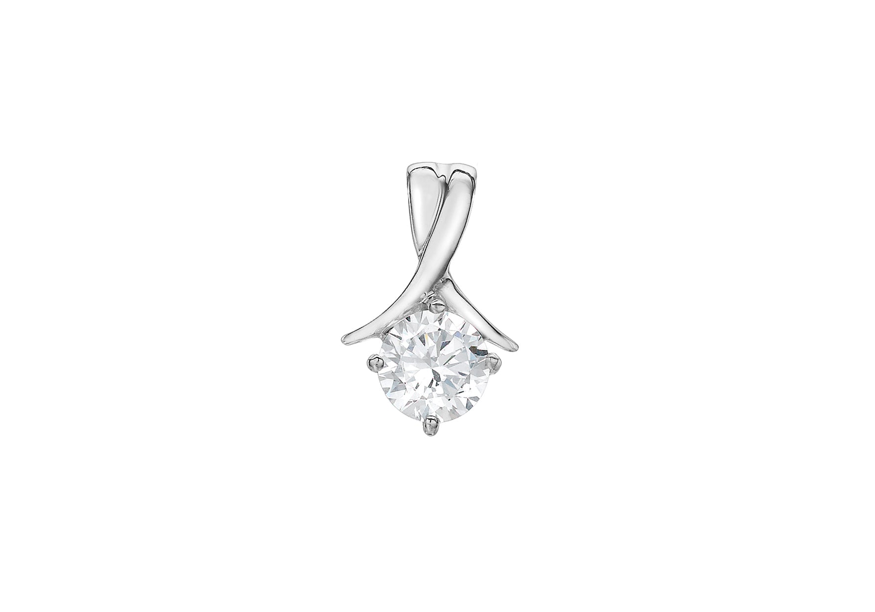 Pendant Height: Including Bail 12.5mm Pendant Width: 7.8mm Finish: Polished Setting: Claw Stone Details: 1 x 6mm Round White CZs Style: Stone Set Product Type: Pendants Metal Colour: White Metal: 9ct Gold