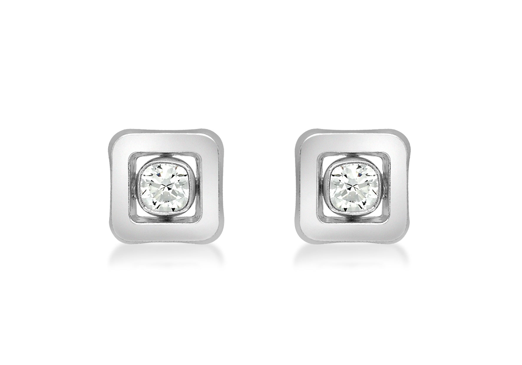 Width: 5mm; Height: 5mm; Fitting: Post; Setting: Rubover; Stone Details: 3mm CZ Stones; Style: Stud Metal Colour: White Metal: 9ct Gold