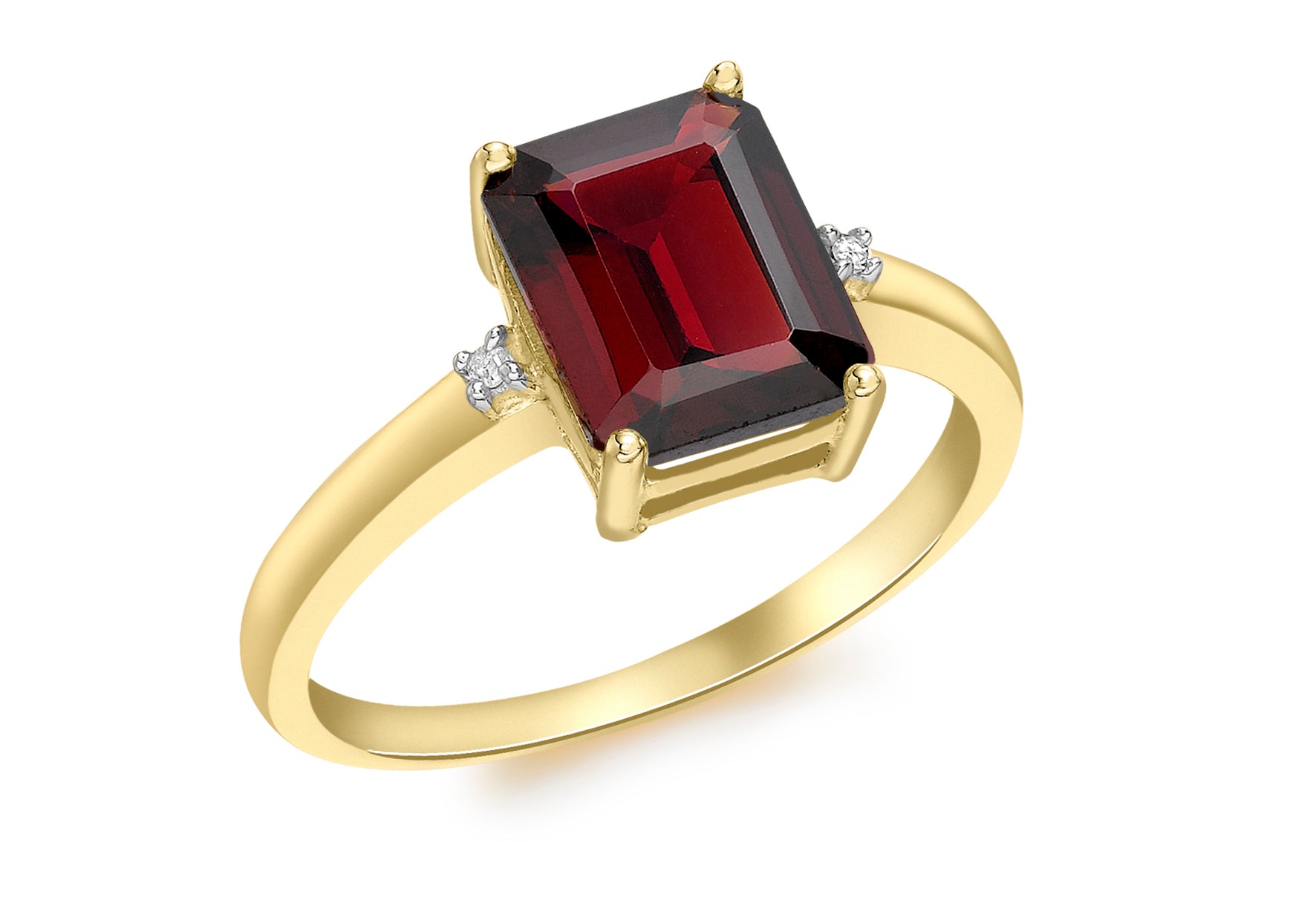 9ct Yellow Gold Garnet & 0.01ct Diamond Ring