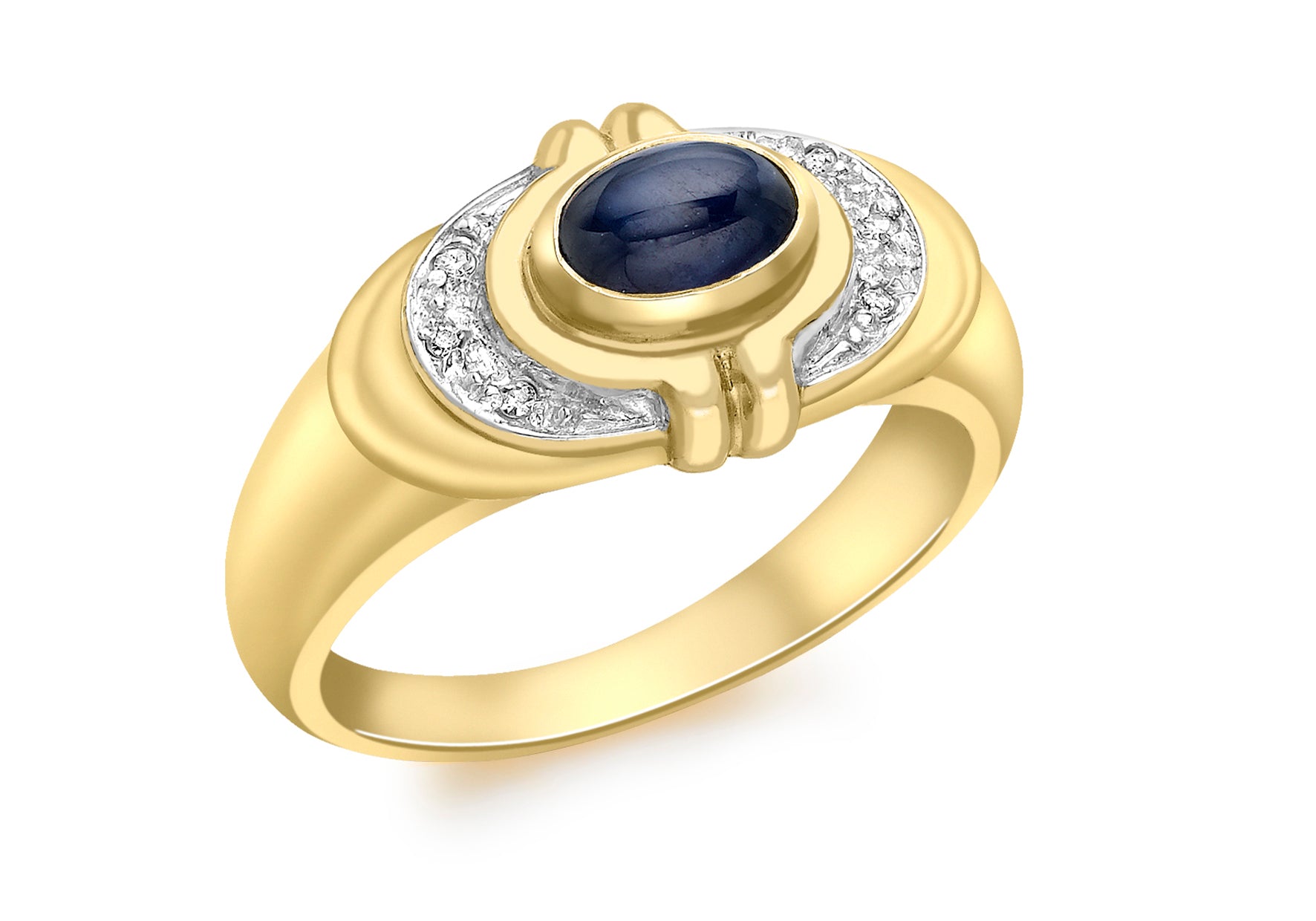 9ct Yellow Gold 0.02ct Diamond and Cabochon Sapphire Ring