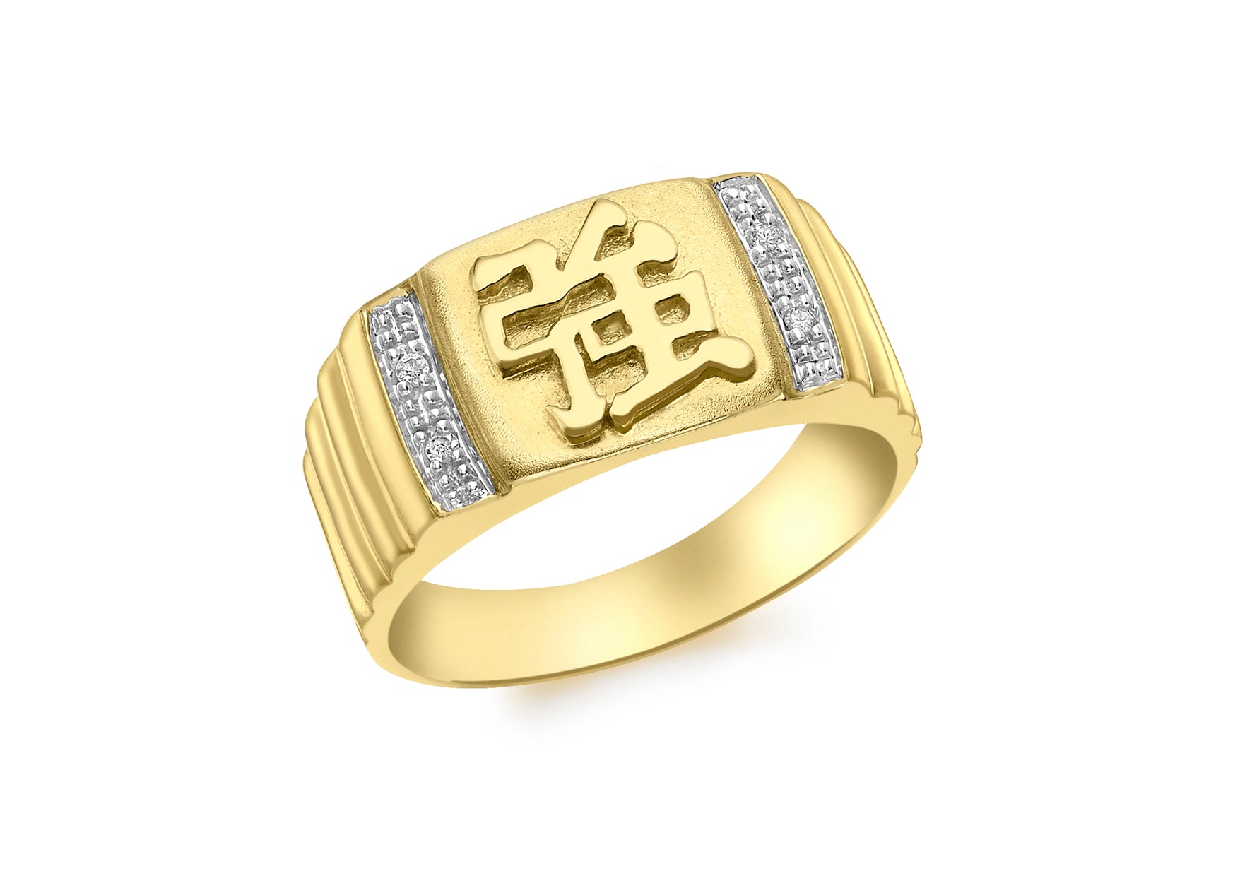 9ct Yellow Gold 0.02ct Diamond Feng Shui Ring