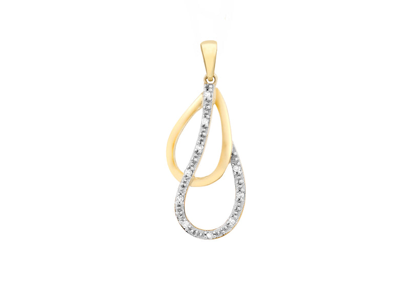 9ct Yellow Gold 0.03ct Diamond Double Teardrop Pendant