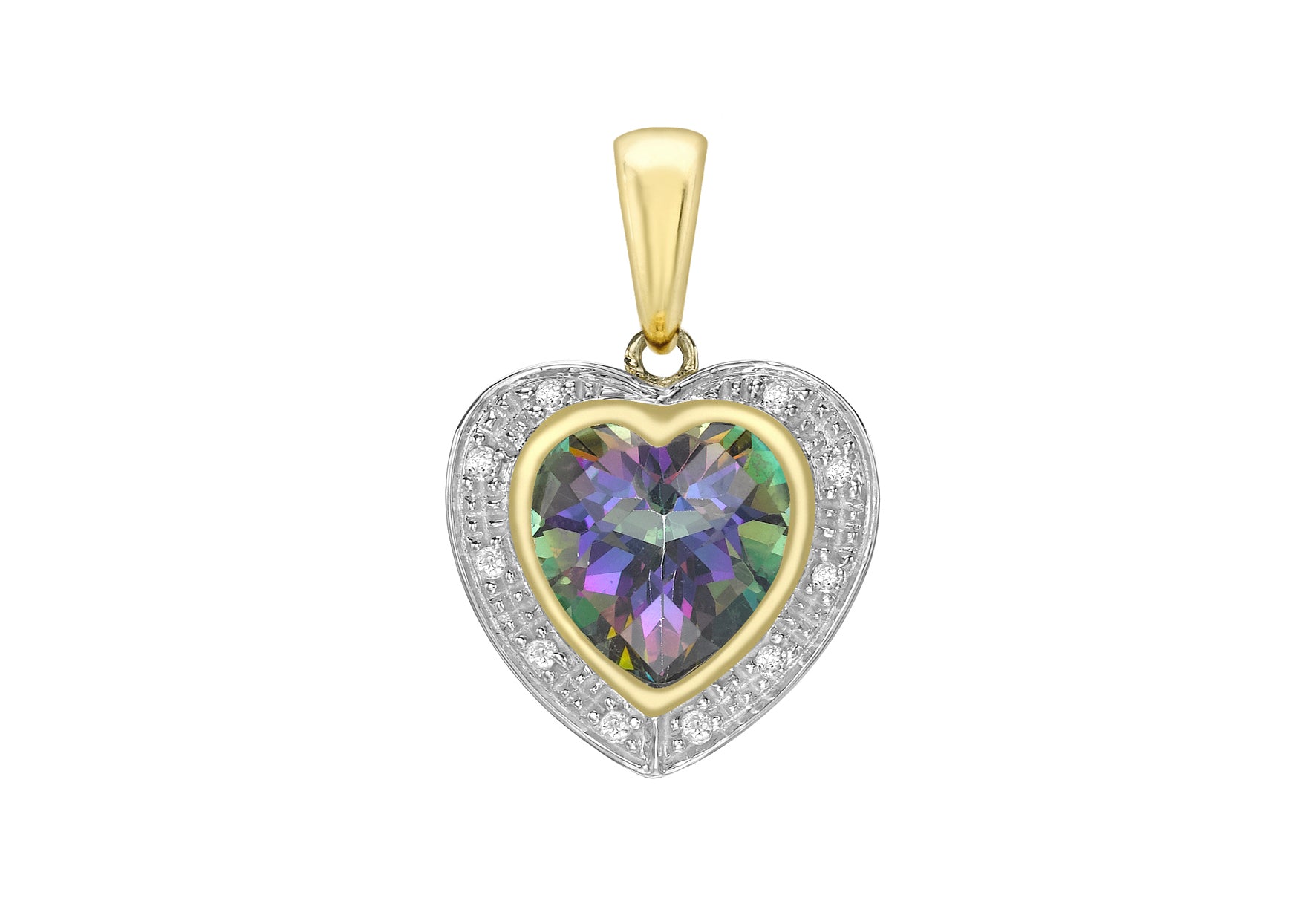 9ct Yellow Gold 0.05ct Diamond and Mystic Topaz Heart Pendant