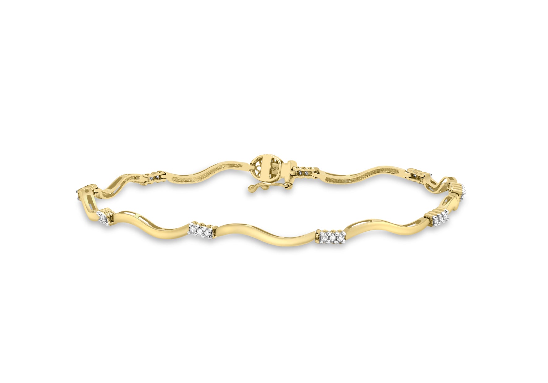 9ct Yellow Gold 0.24ct Diamond Wave Link Bracelet