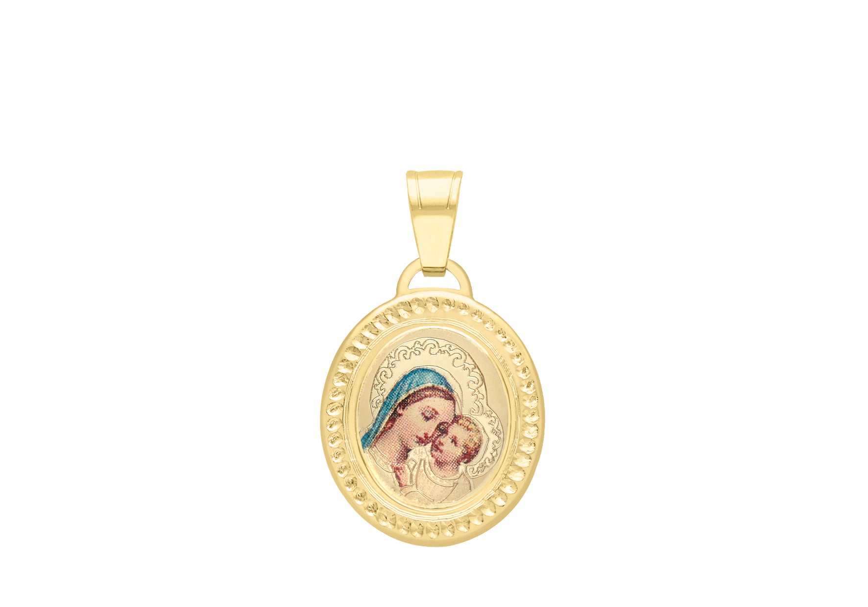 9ct Yellow Gold 15mm Madonna & Child Oval Satin Pendant