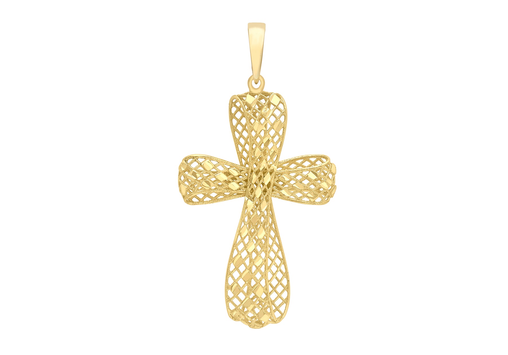 9ct Yellow Gold Diamond Cut Mesh Cross Pendant