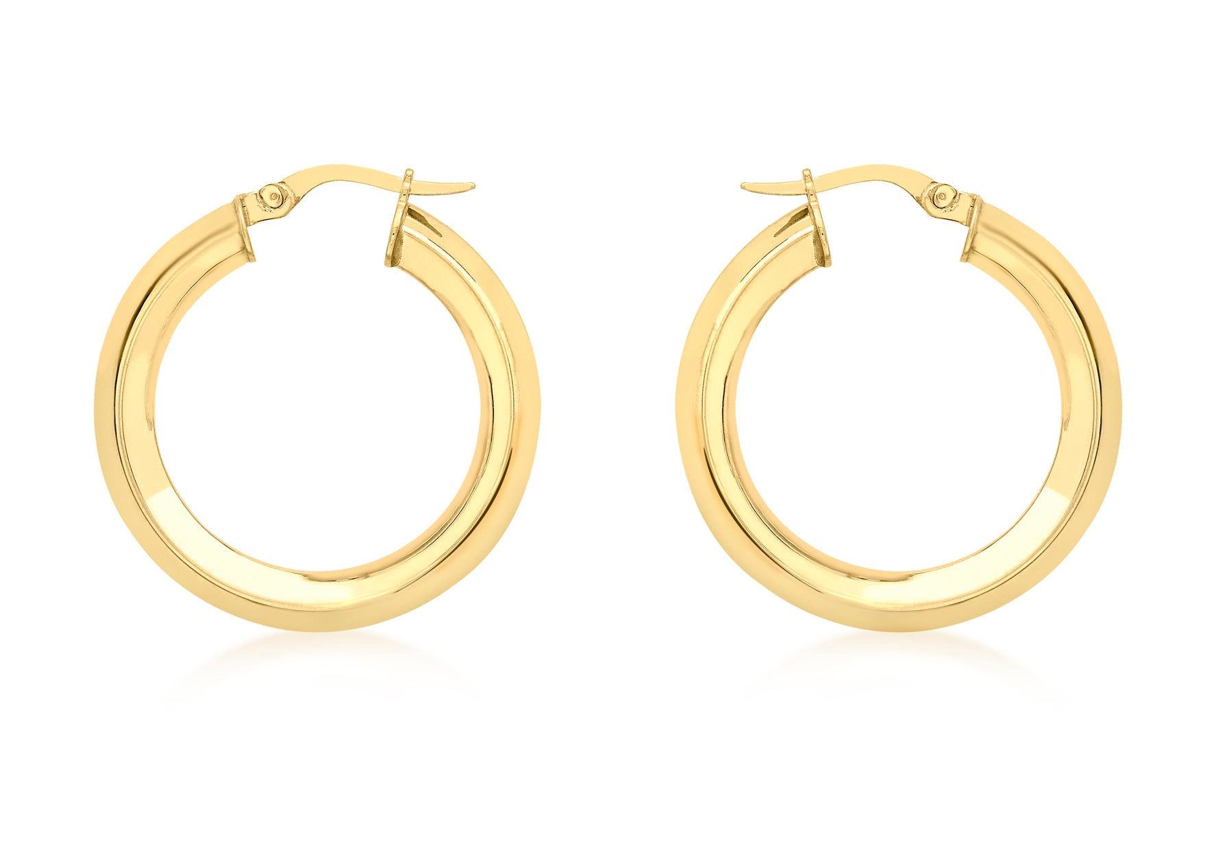 9ct Yellow Gold 27mm Square Tube Creole Earrings
