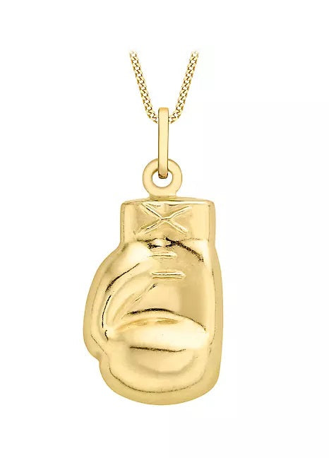 A bold yet refined tribute to the art of boxing, this pendant captures the unmistakable form of a classic boxing glove in solid 9ct yellow gold. Every curve and contour is thoughtfully sculpted, from the subtly rounded knuckles to the precisely detailed lacing, giving the piece a tangible sense of realism.