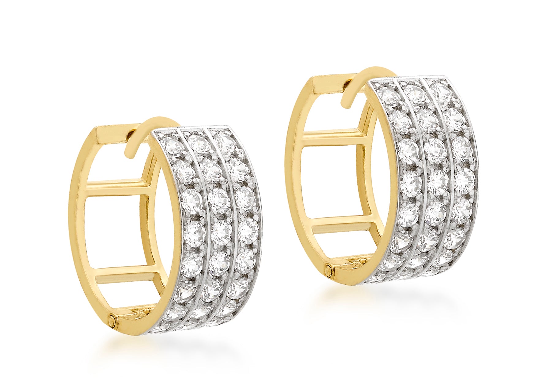 9ct Yellow Gold Zirconia Triple Row Huggy Earrings