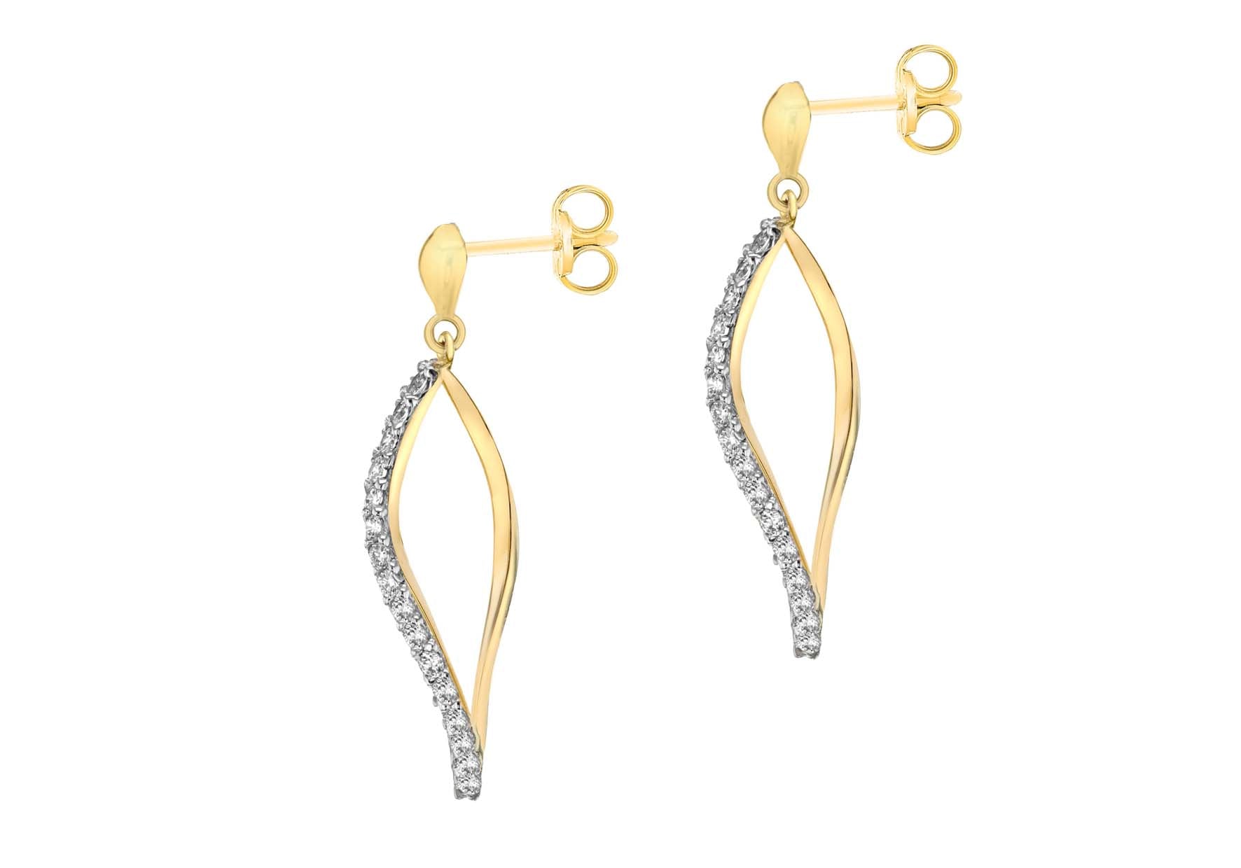 Width: 9mm Height: 32mm Finish: Polished Fitting: Post Setting: Pave-Style: Drop Product Type: Earrings Metal Colour: Yellow Metal: 9ct Gold