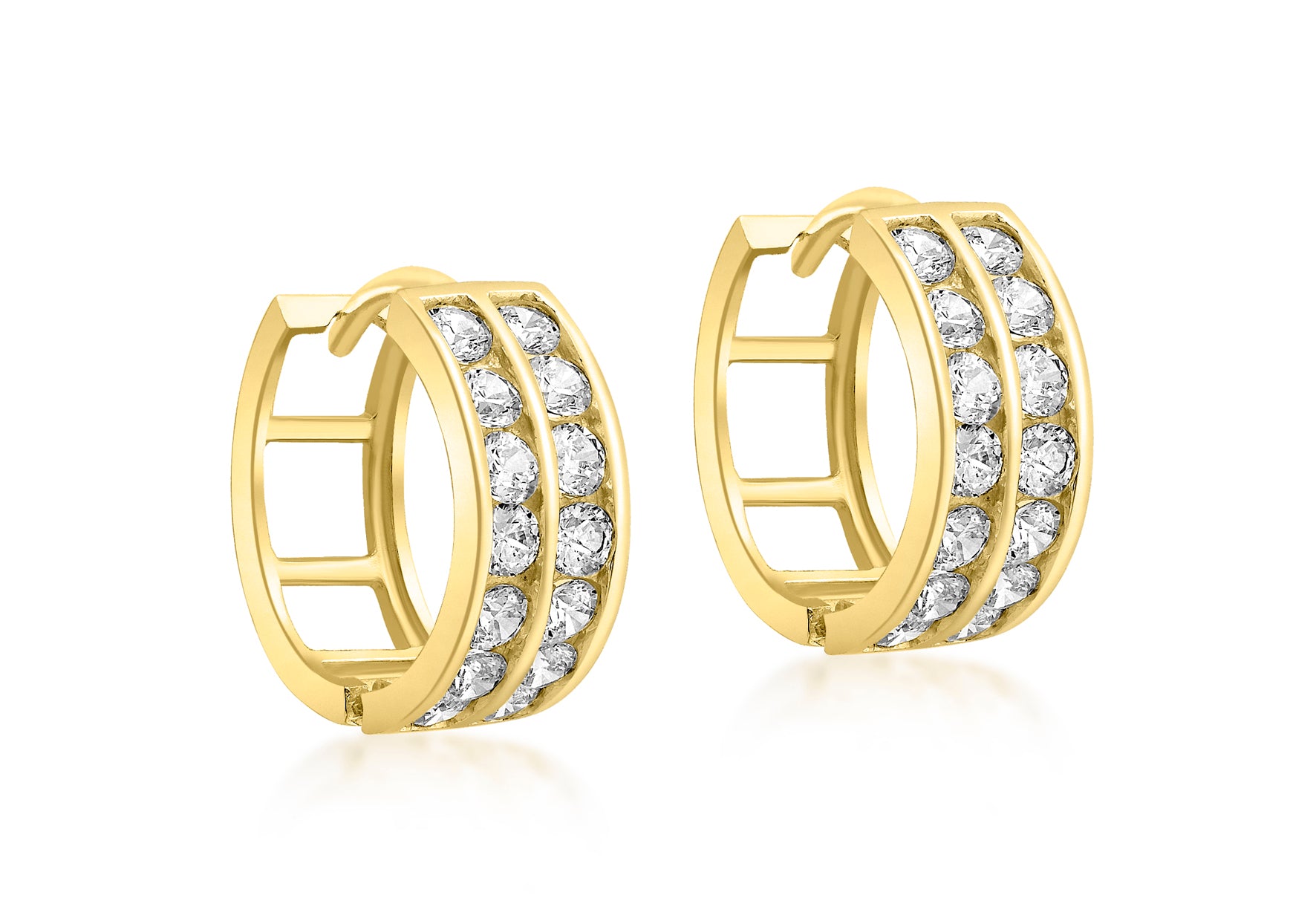 9ct Yellow Gold Zirconia Double Row Huggy Earrings