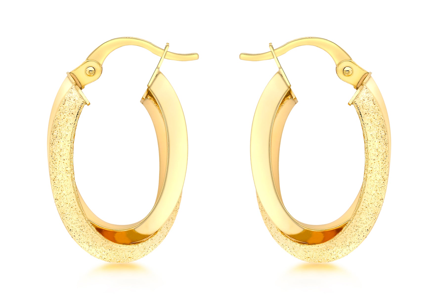 Width: 14mm; Height: 23mm; Finish: Textured Finish; Fitting: Hinged Post; Style: Creole Metal Colour: Yellow Metal: 9ct Gold