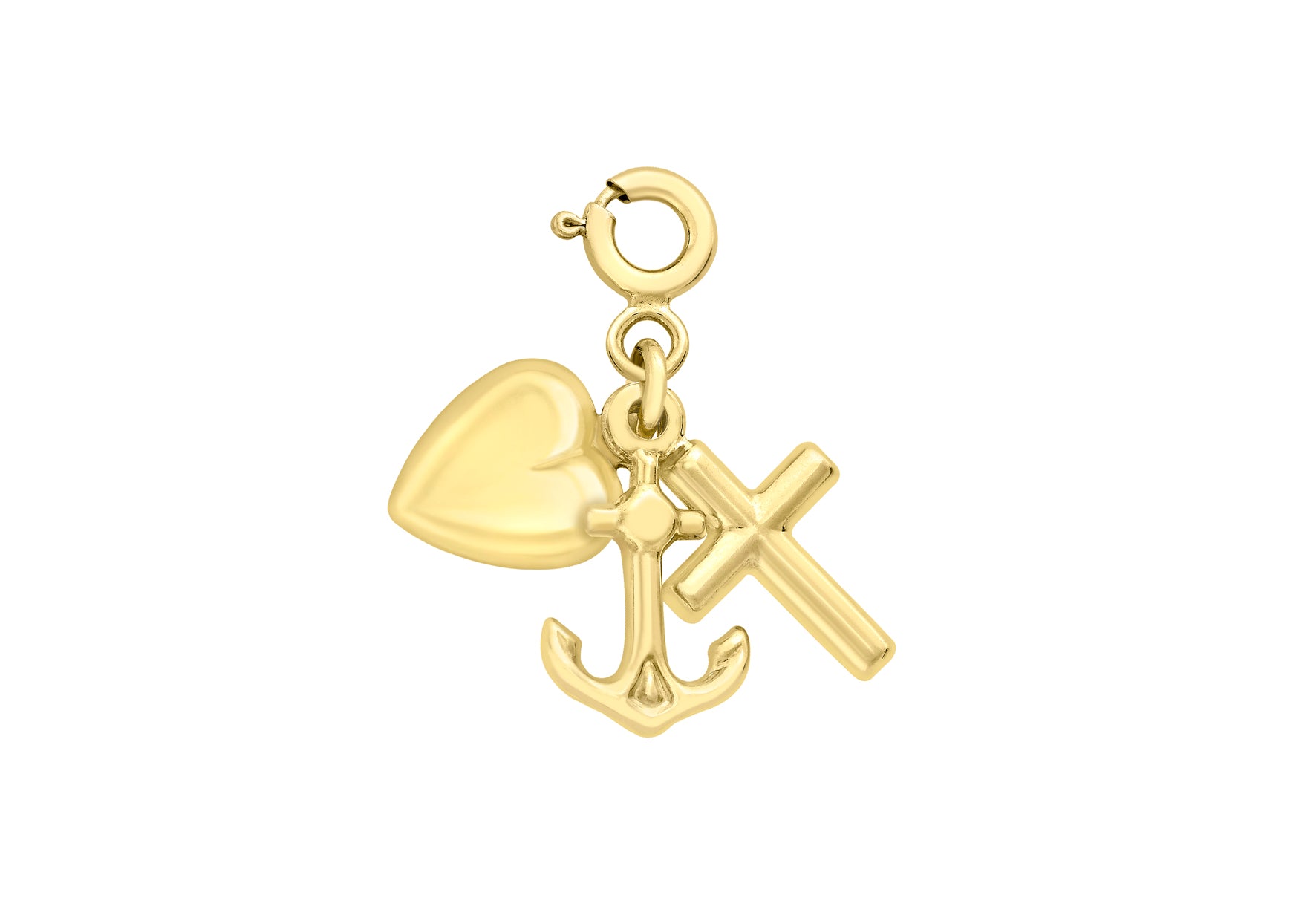 9ct Yellow Gold Faith Hope & Charity Spring Ring Charm Pendant