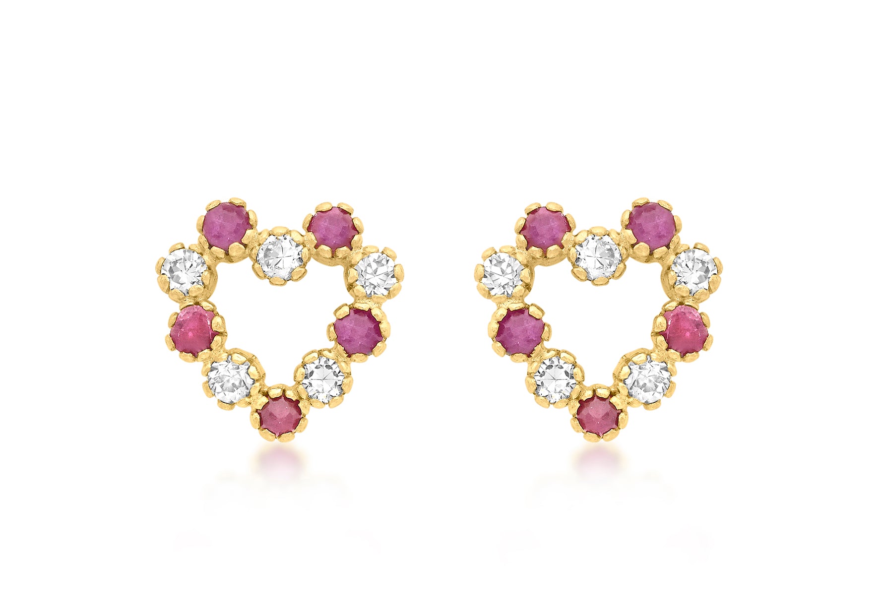 9ct Yellow Gold Rose and White CZ Stone Set Heart Stud Earrings Width: 10mm; Height: 10mm; Fitting: Post; Setting: Claw; Style: Stud Metal Colour: Yellow Metal: 9ct Gold
