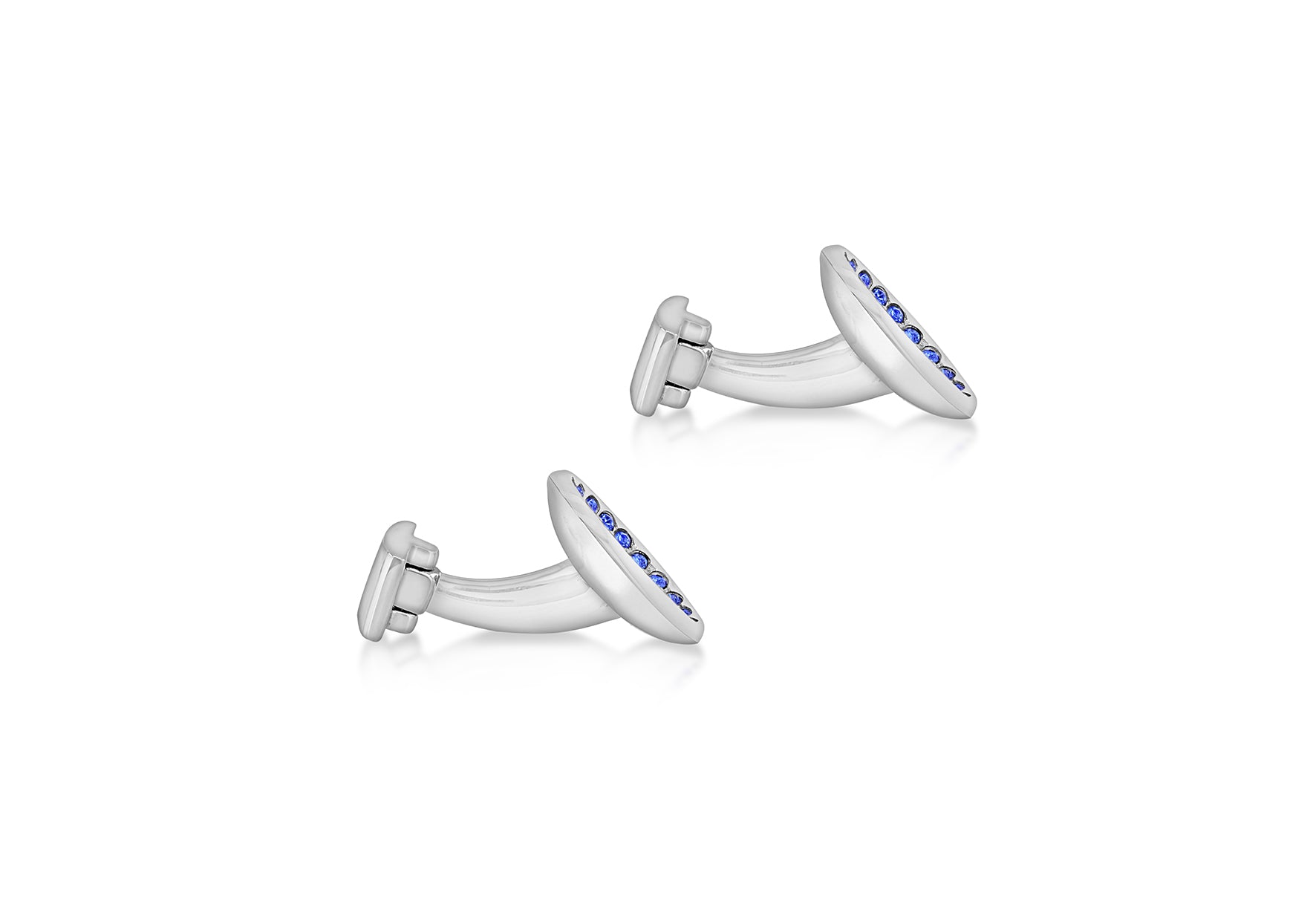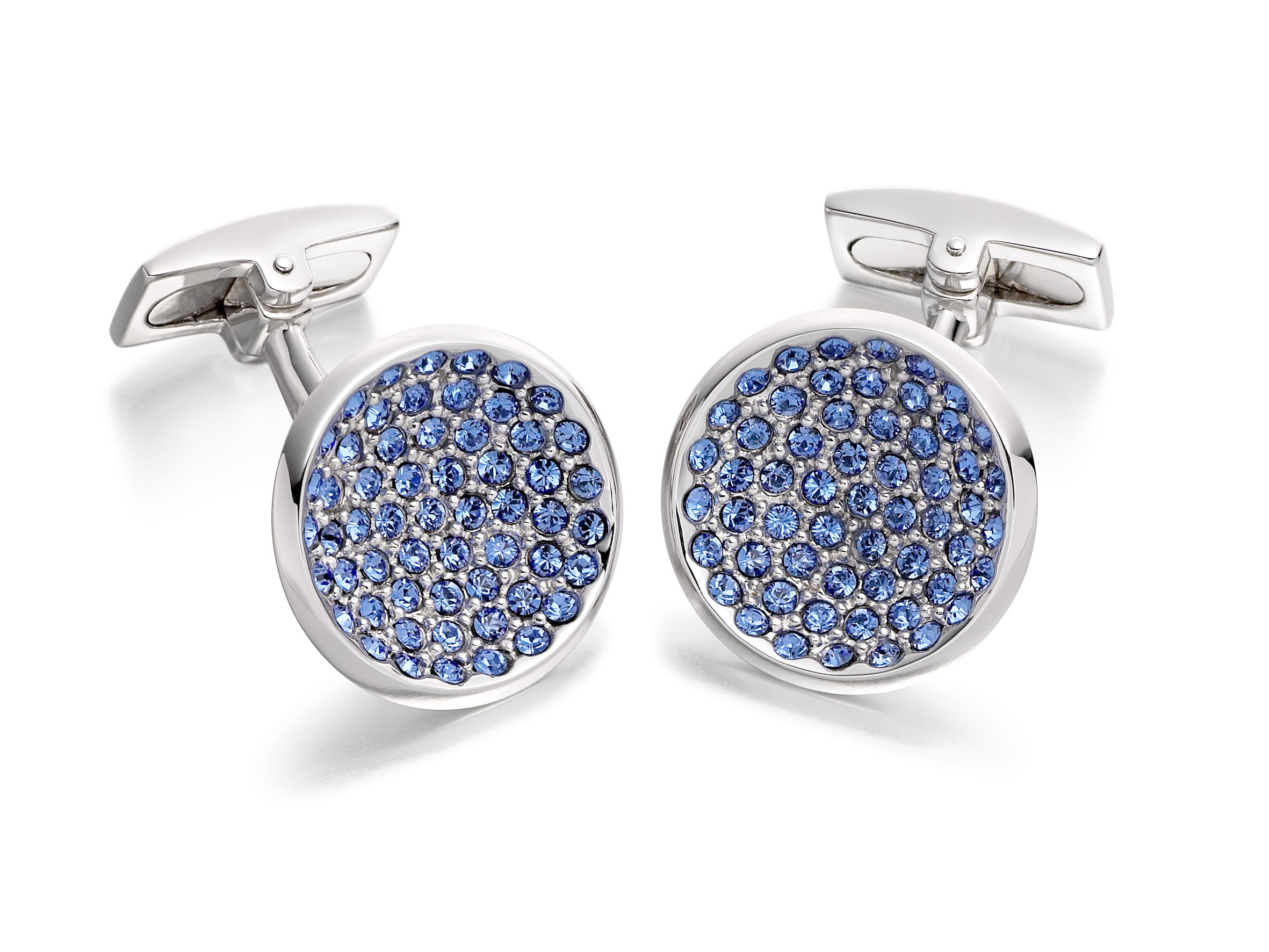 Hoxton London Men's Sterling Silver and Dark Blue CZ Round Cufflinks Width: 25mm; Setting: Pave; Stone Details: 2mm Dark Blue CZ Stones; Brand: Hoxton Cufflinks Metal Colour: Silver Metal: Silver