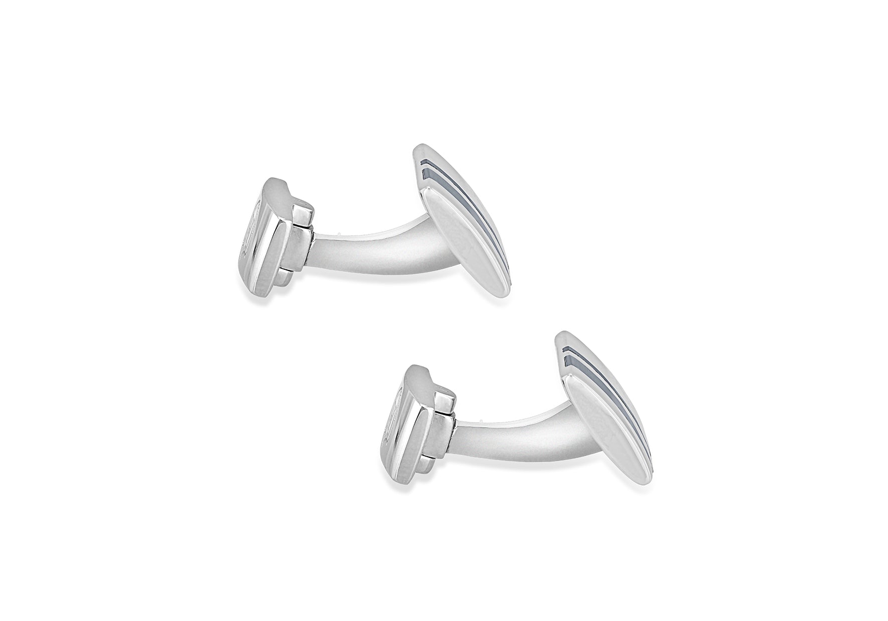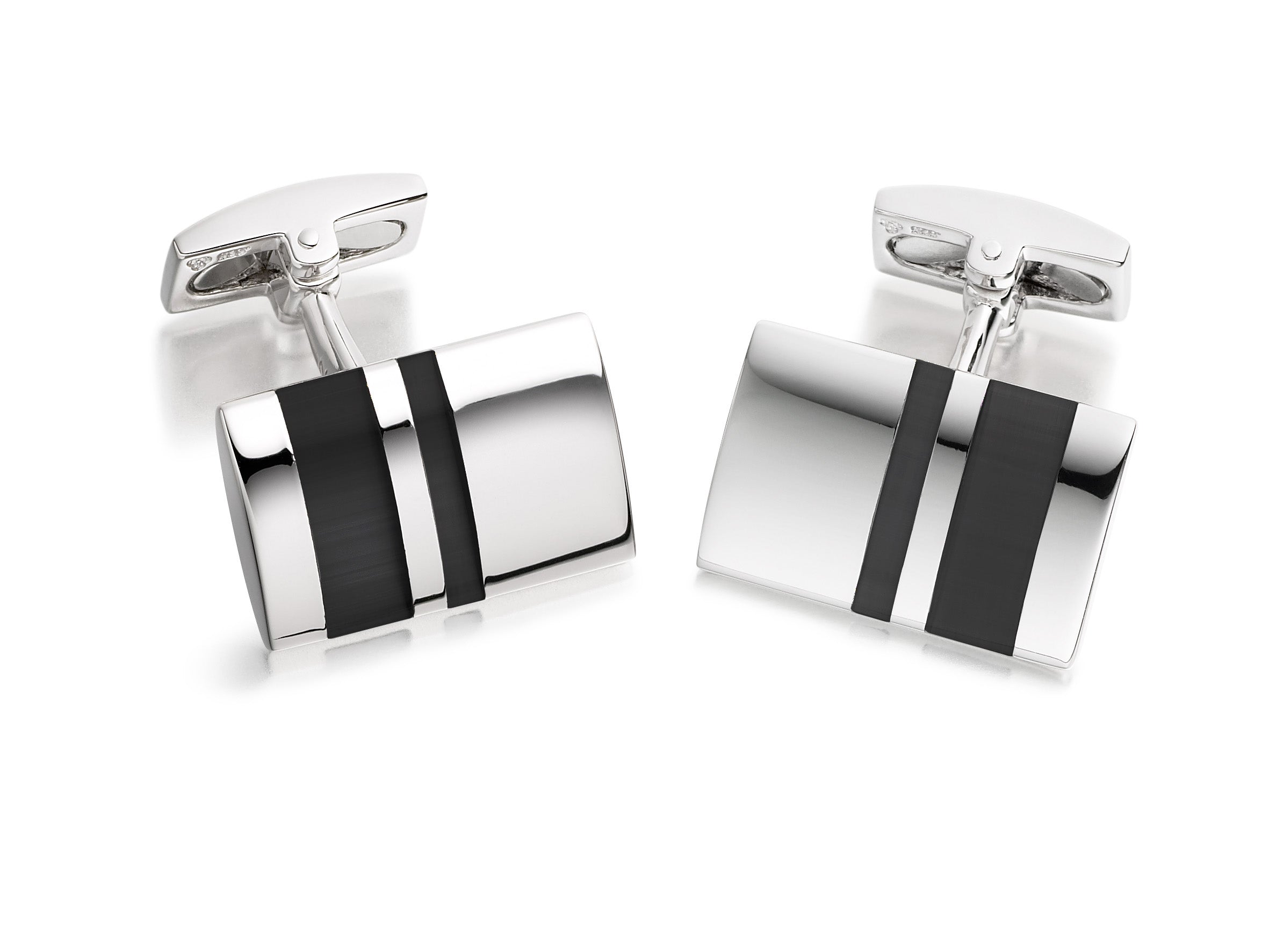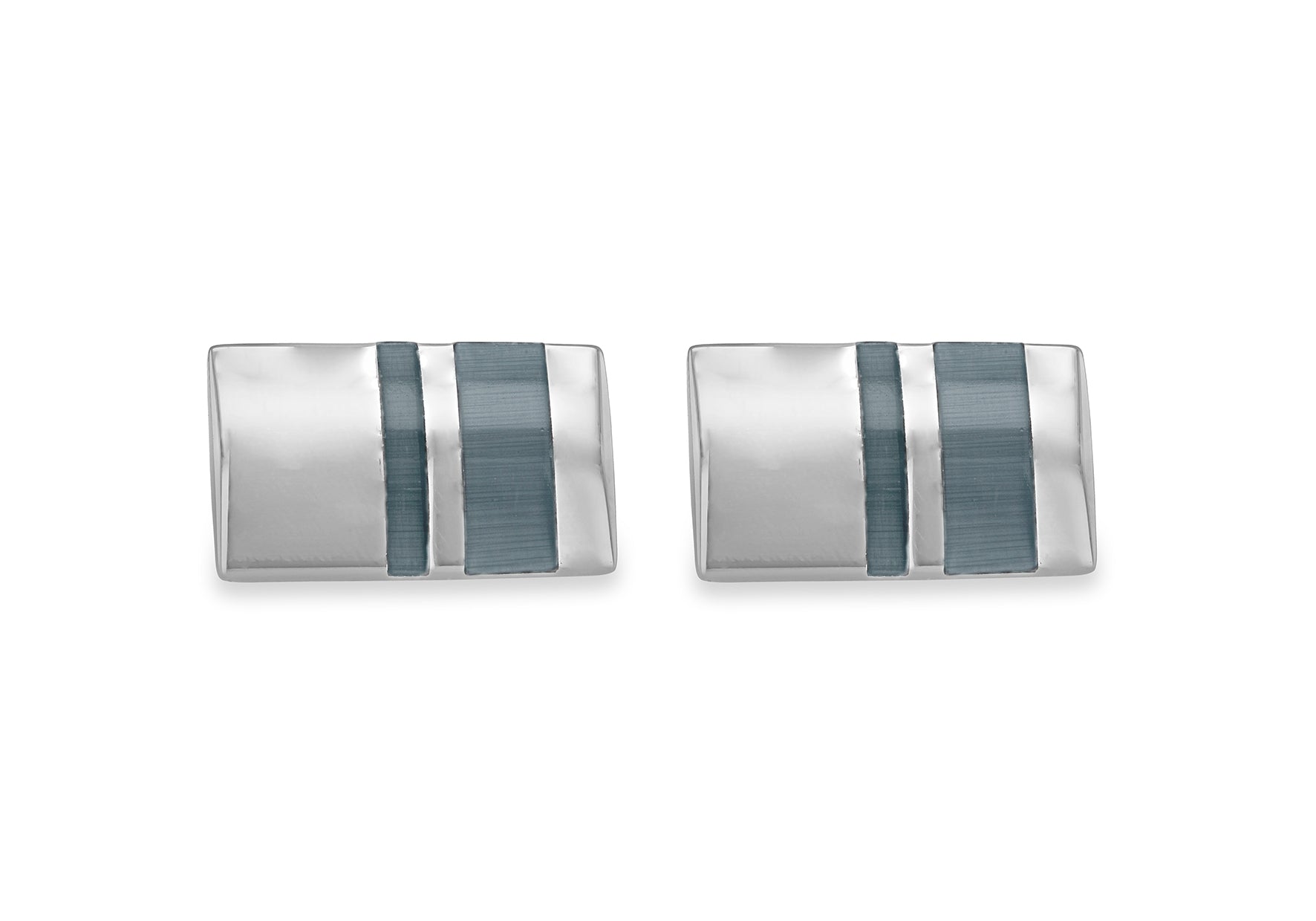 Hoxton London Men's Sterling Silver and Grey Cats Eye Stripe Rectangle Cufflinks