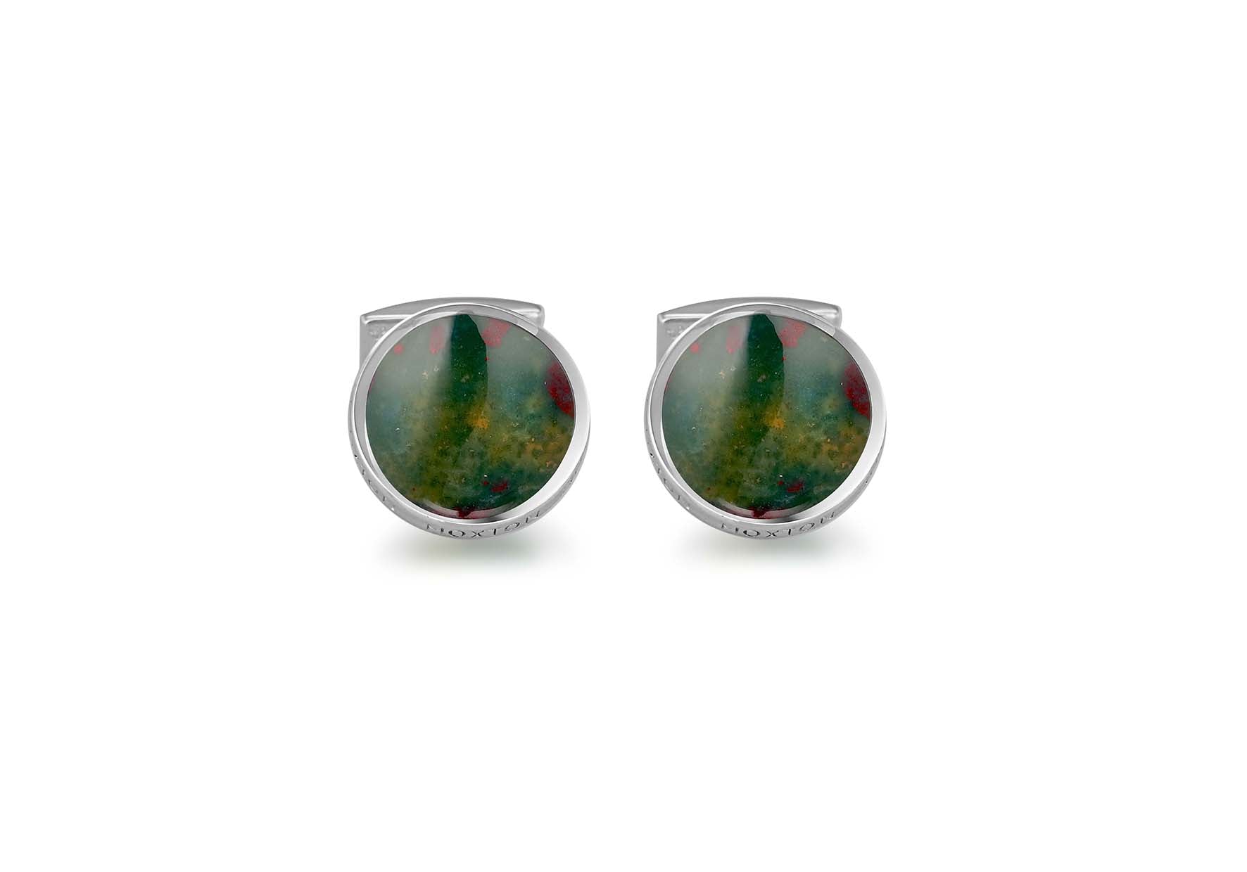 Hoxton London Men's Sterling Silver and Jade Round Cufflinks