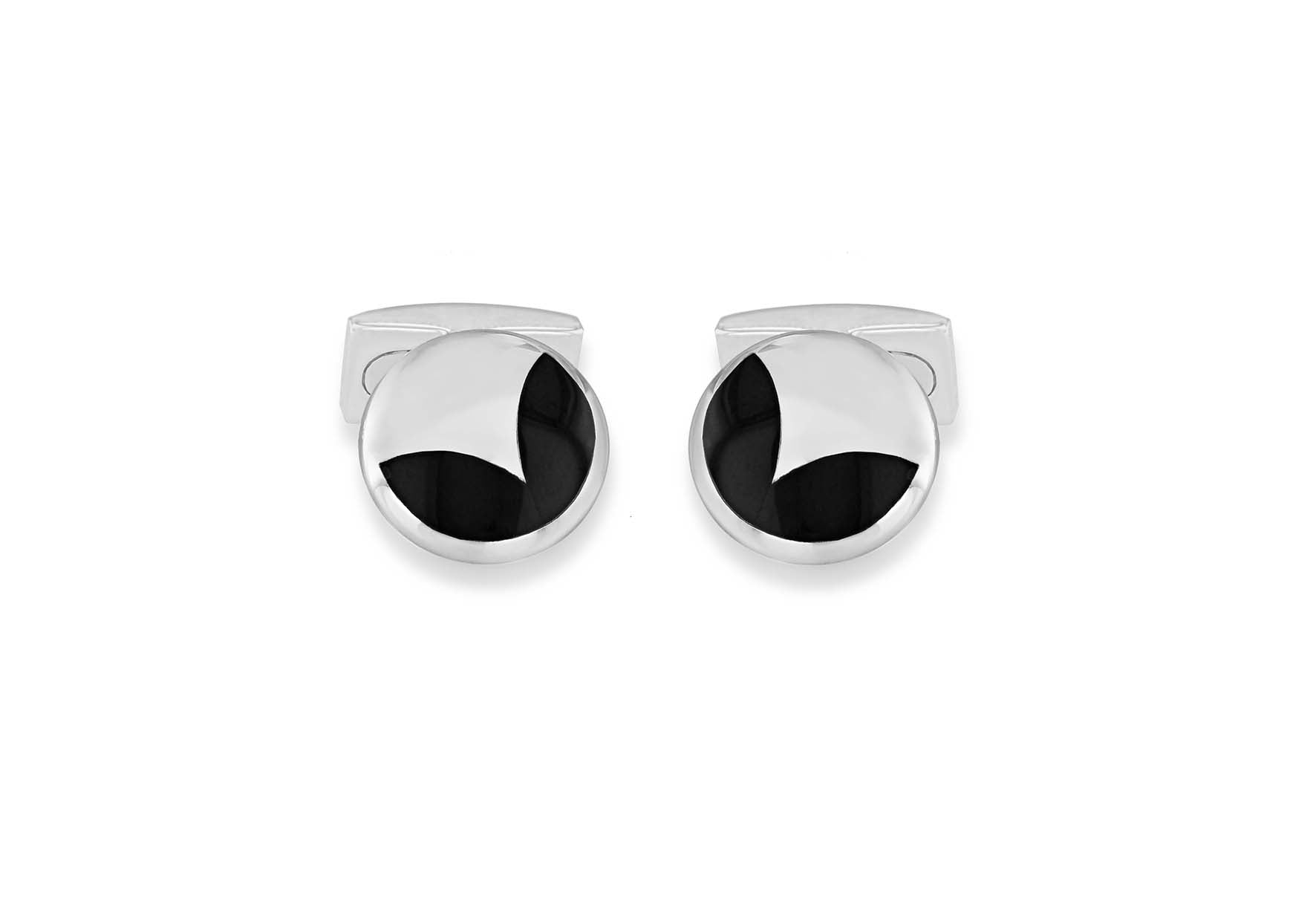 Hoxton London Men's Sterling Silver & Onyx Round Cufflinks