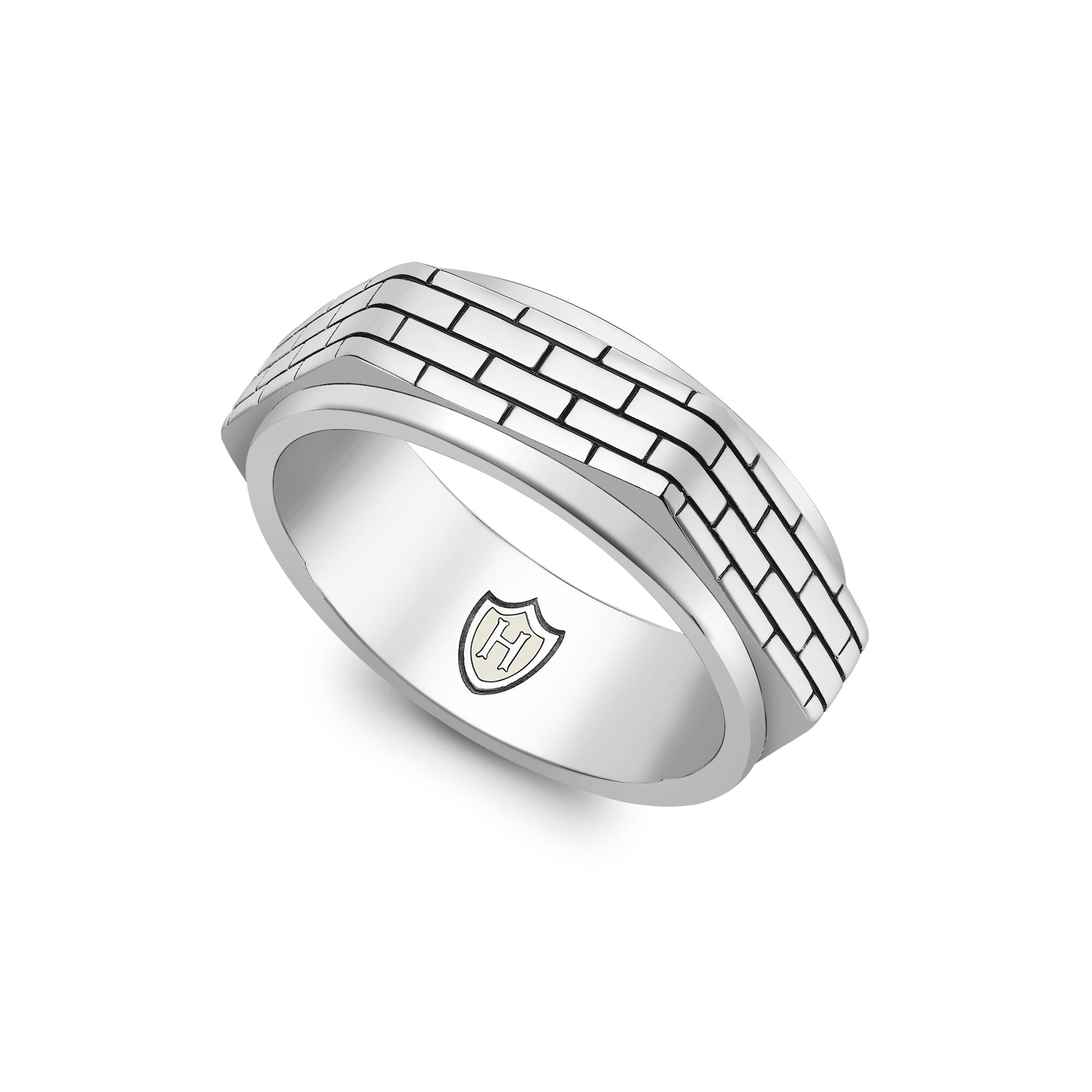 Hoxton London Men's Sterling Silver Hex Brick Spinning Ring