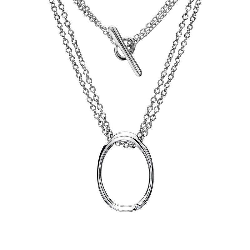 Link Necklace Hand-Set With A Diamond Accent Details: FULL CUT; Average Carat Weight: 0.01ct; Length: 46cm; Finish: rhodium-plated/polished; Setting: Bezel; Stone Details: diamond; Clasp: T-Bar; Metal Colour: Rhodium Metal: Brass