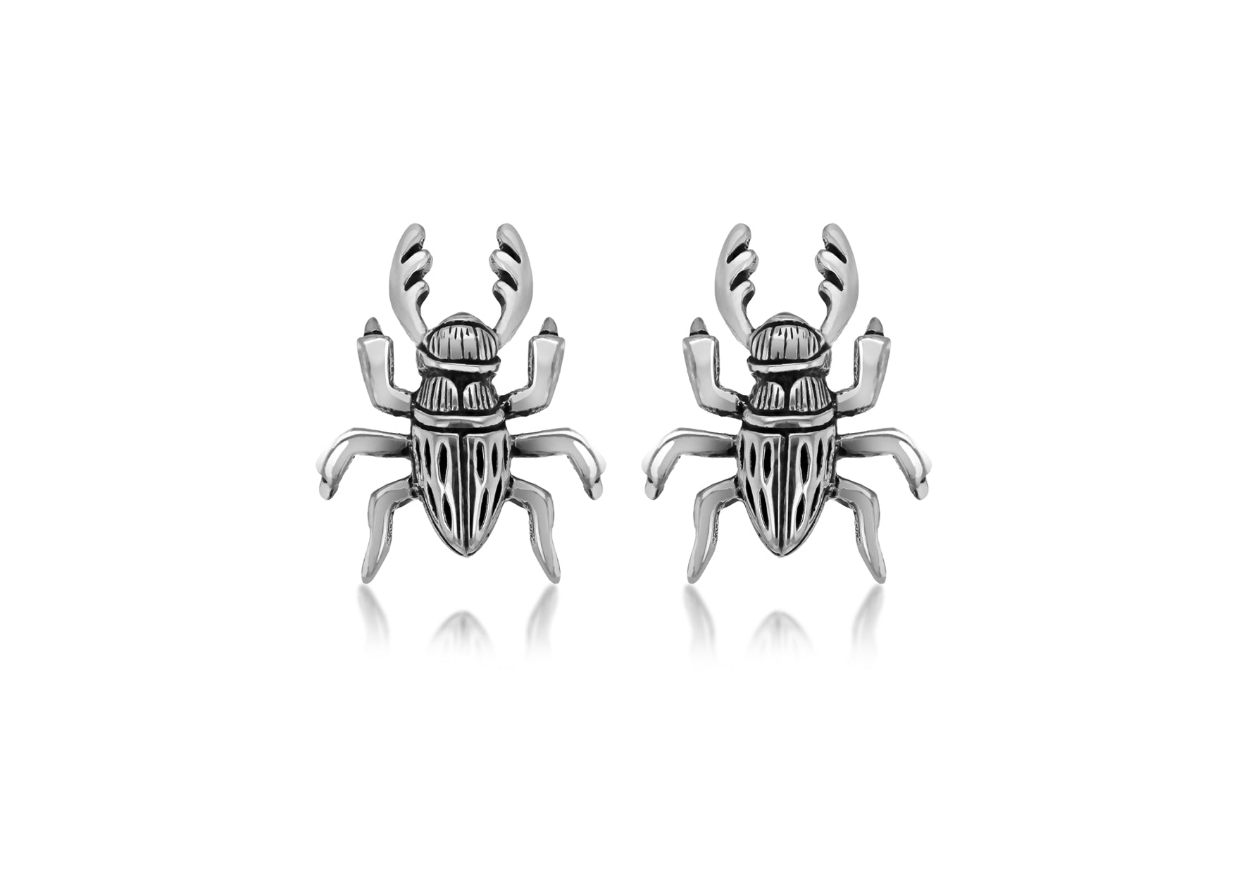 Sterling Silver Oxidised Stag Beetle Stud Earrings