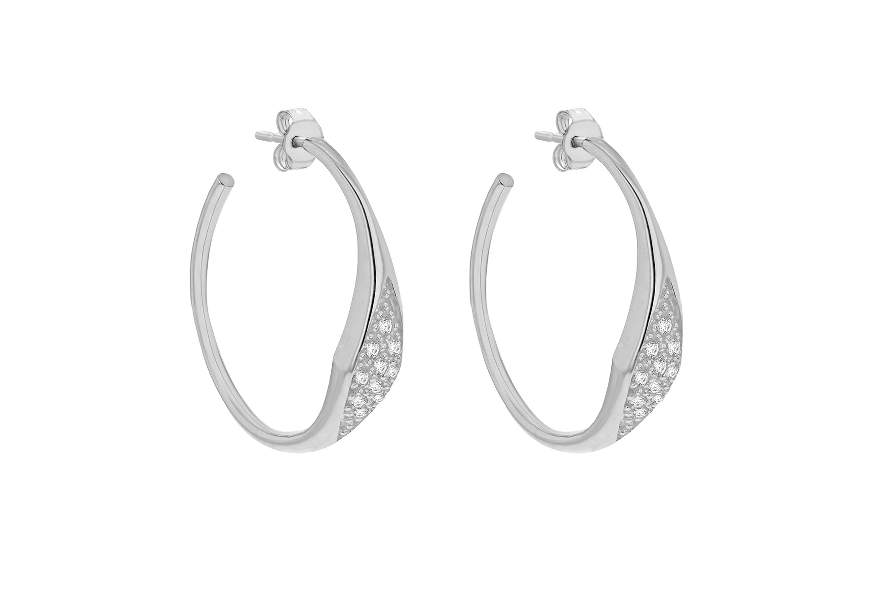 Width: 29.2mm Height: 28.3mm Finish: Polished Fitting: Post Setting: Pave Stone Details: 20 x 1.7mm Round White CZ Style: Hoop Product Type: Earrings Metal Colour: Silver Metal: Silver