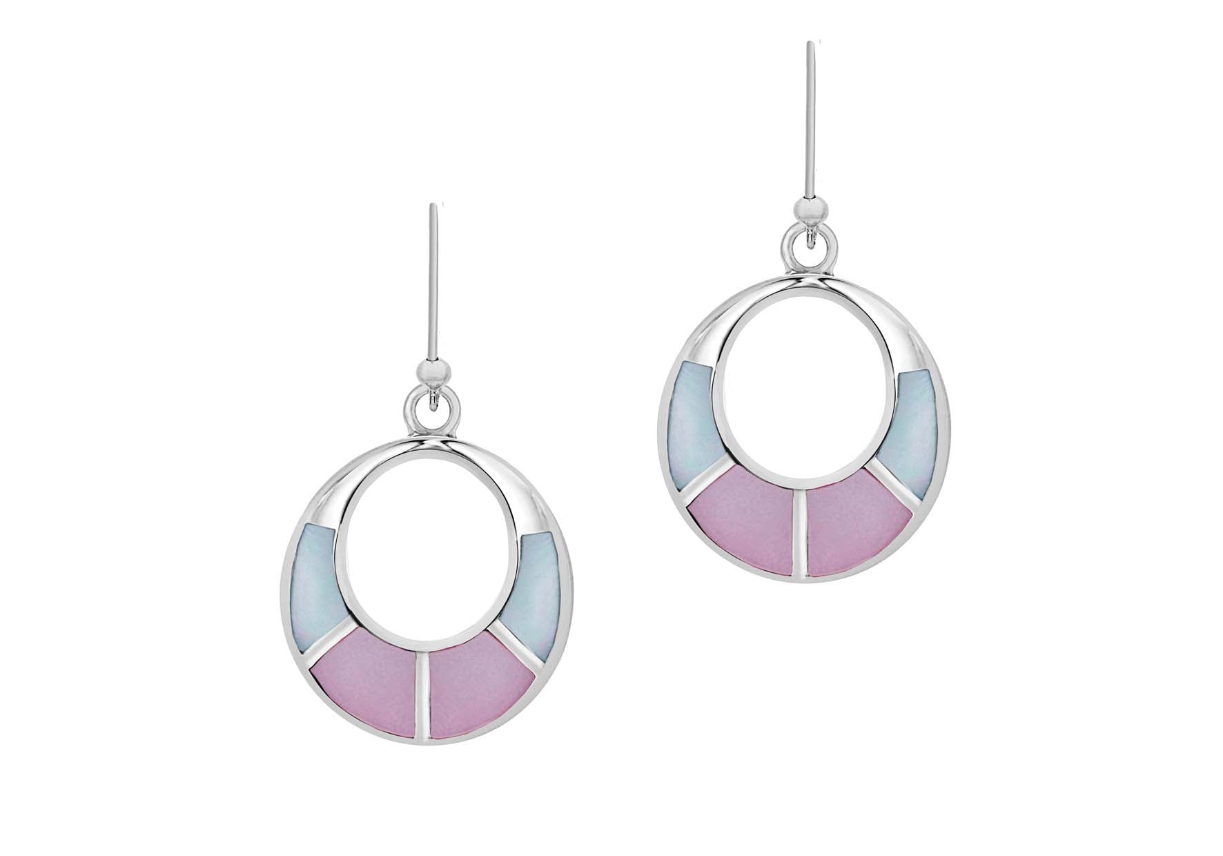 Sterling Silver Pink & Blue Enamel Set Drop Earrings