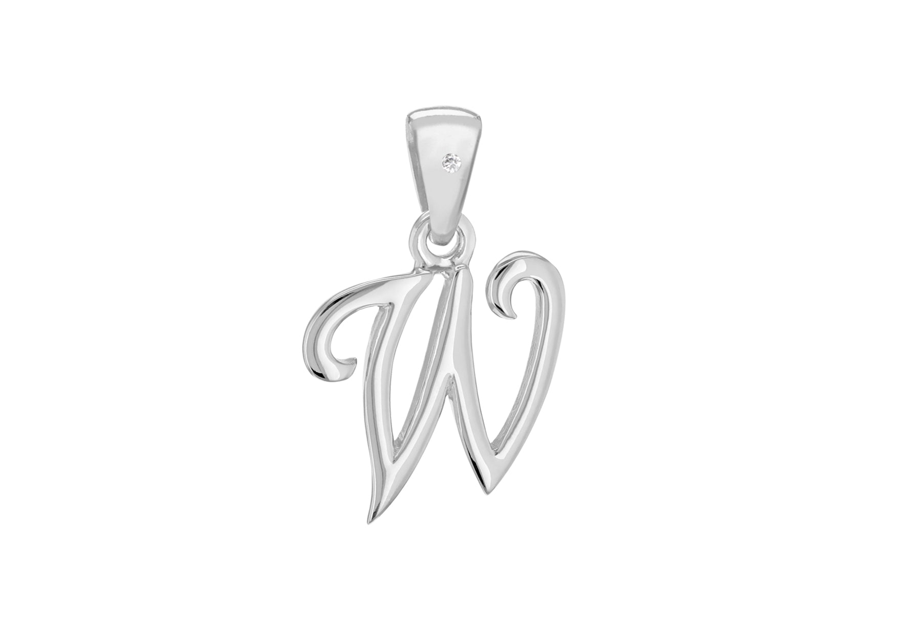 Sterling Silver Initial "W" Rhodium Plated 0.005ct Diamond Pendant