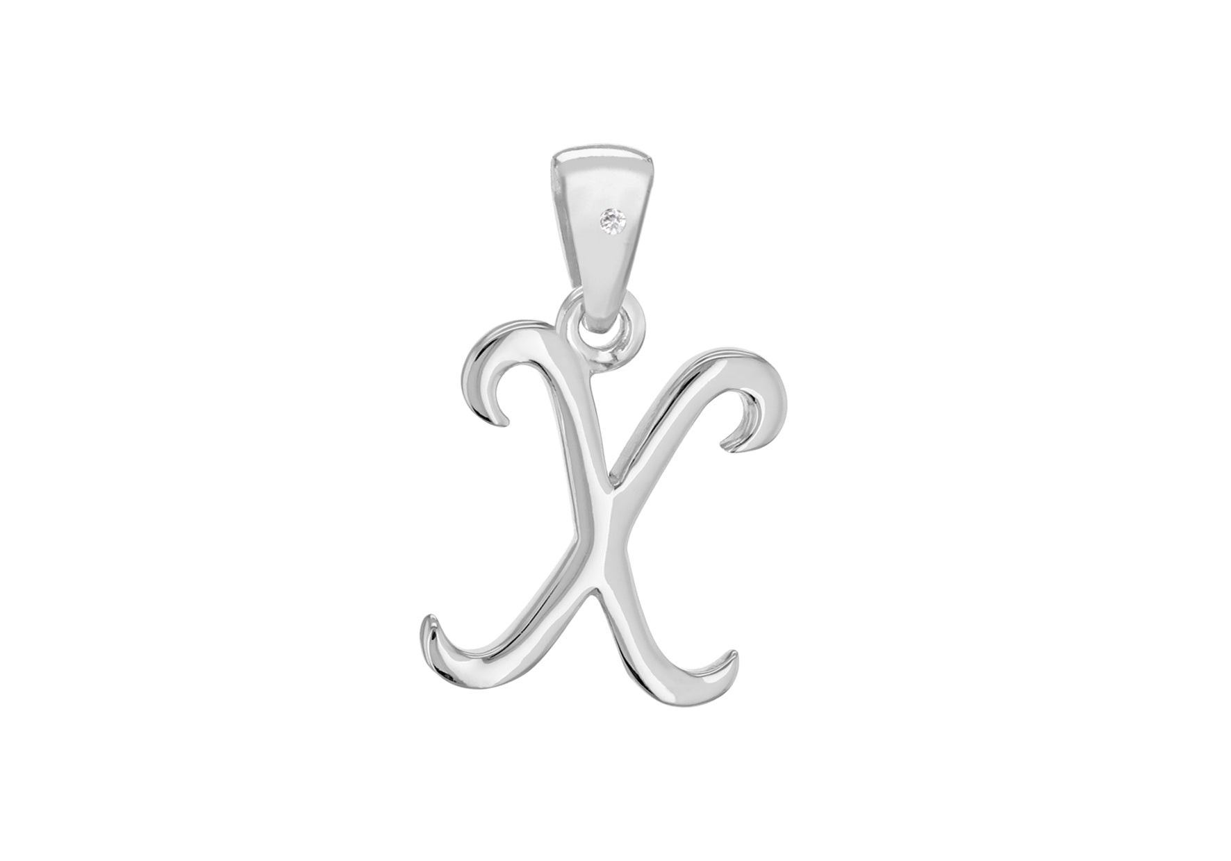 Sterling Silver Initial "X" Rhodium Plated 0.005ct Diamond Pendant