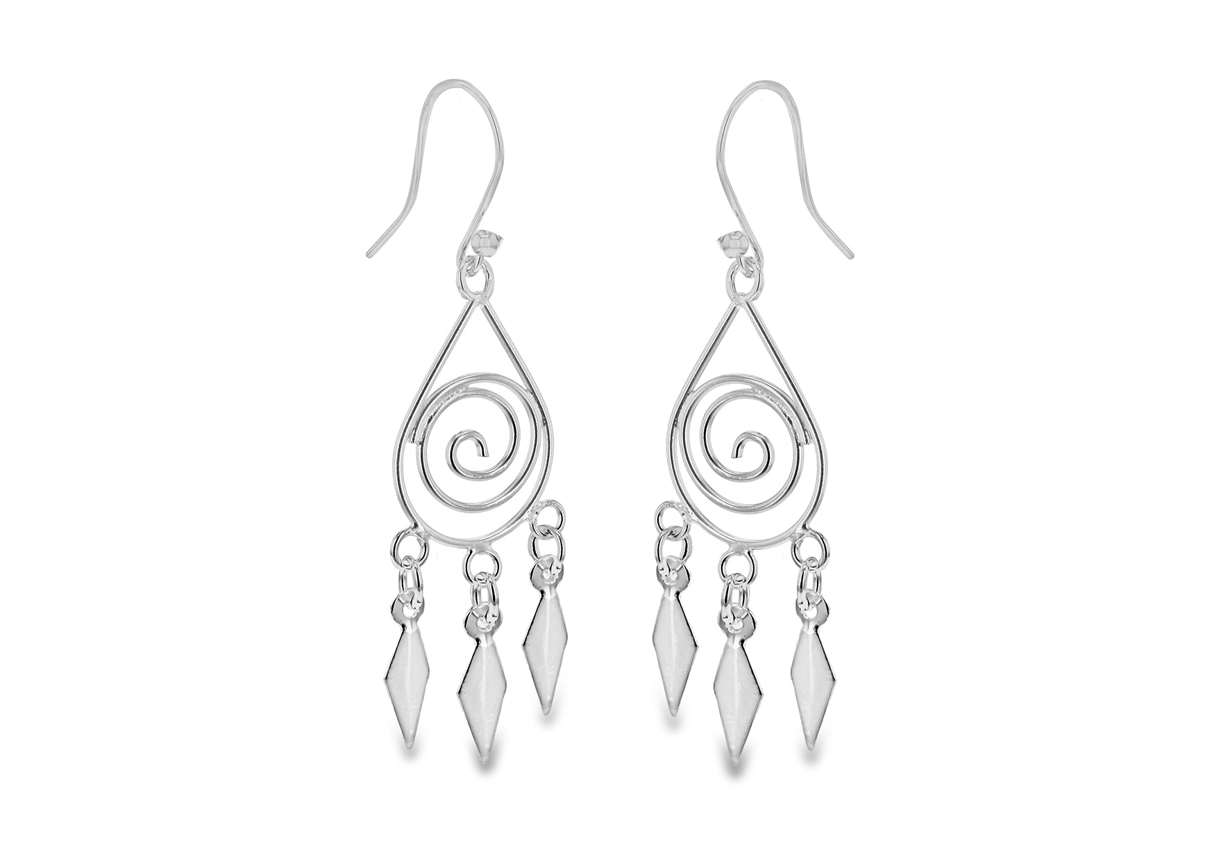 Sterling Silver Swirl Tri-Drop Hook Earrings Style: Drop Metal Colour: Silver Metal: Silver