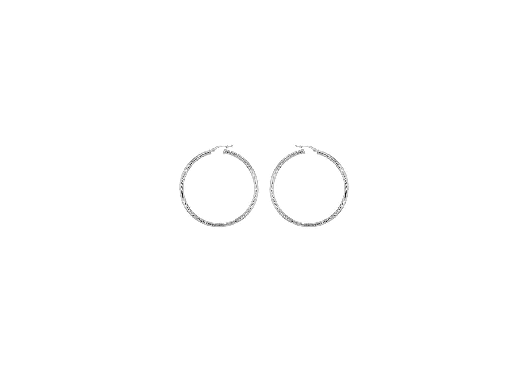 Details: Inner Diameter 19mm Width: Round Tube 3mm Diameter: 25mm Finish: Diamond Cut Fitting: Hinged Post Style: Creole Product Type: Earrings Metal Colour: Silver Metal: Silver