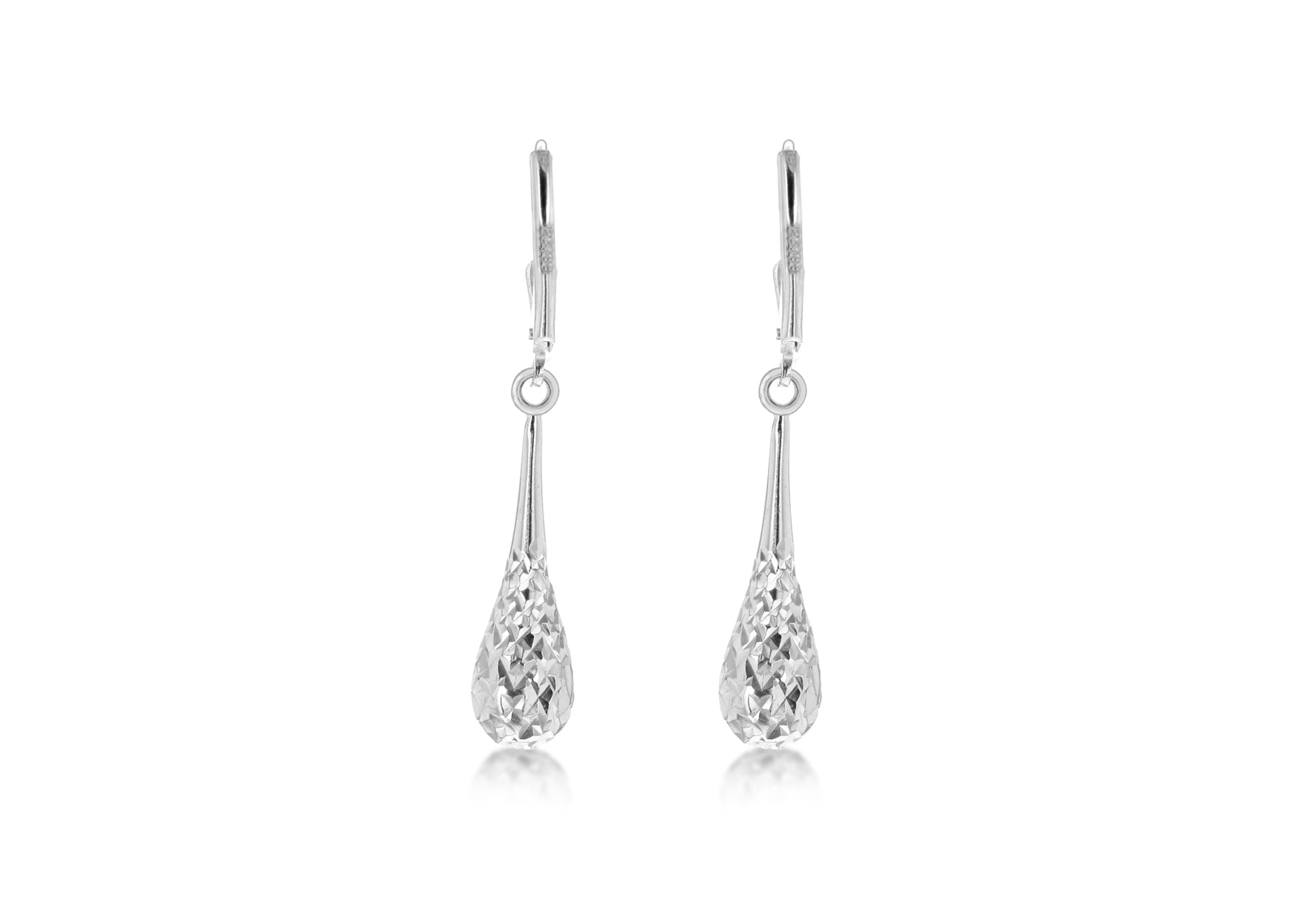 Made from premium sterling silver, the earrings feature a sparkling diamond cut teardrop design that will catch the eye. The lever-back closure keeps the earrings securely in place, while the drop design adds a touch of sophistication to any look or outfit.