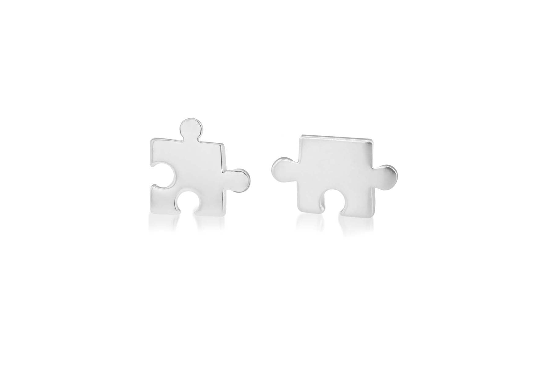 Sterling Silver Jigsaw Piece Asymmetric Stud Earrings