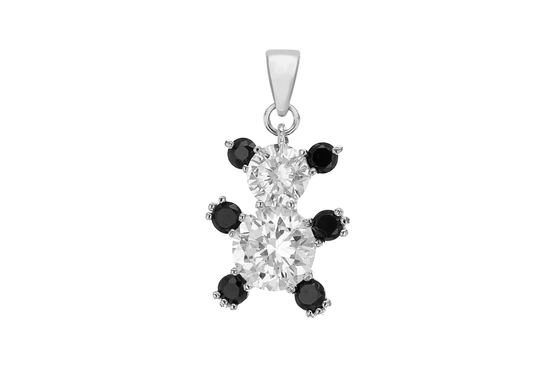 Sterling Silver Black & White Zirconia Teddy Bear Pendant