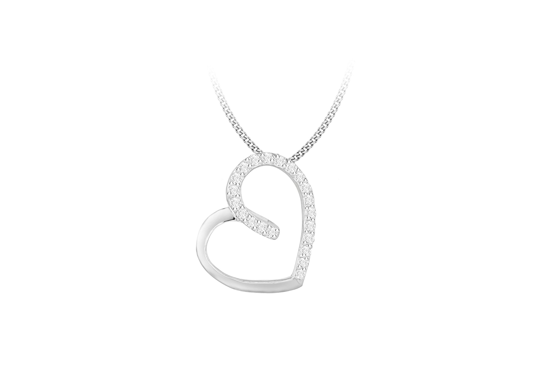 Sterling Silver Zirconia Half Polished Heart Slider Pendant Height: 18.8mm; Pendant Width: 19.8mm; Finish: Polished; Setting: Rubover; Stone Details: 21 x 1.6mm Round White CZs; Style: Stone Set Metal Colour: Silver Metal: Silver