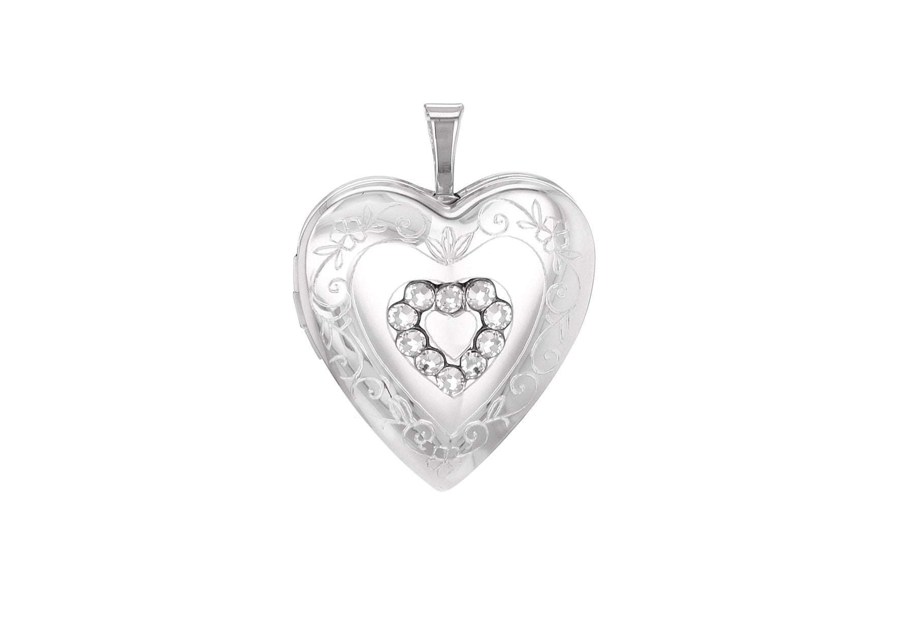 Sterling Silver Crystal Etched Heart Locket Pendant