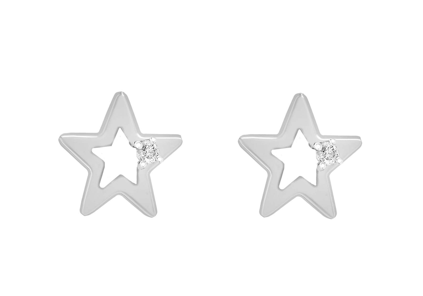 Width: 7mm Height: 7mm Finish: Polished Fitting: Post Setting: Claw Stone Details: 2 x 1mm Round White CZs Style: Stud Product Type: Earrings Metal Colour: Silver Metal: Silver