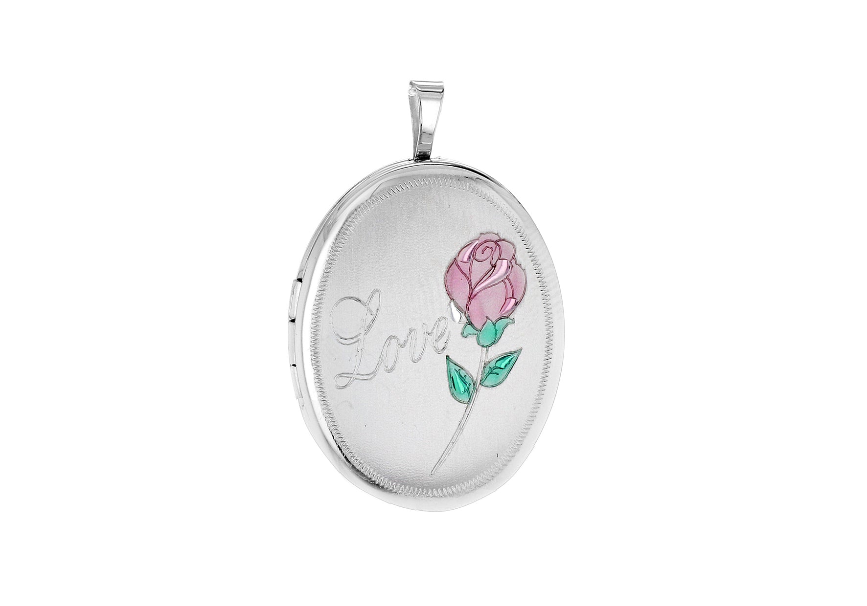 Sterling Silver Etched Love and Rose Oval Locket