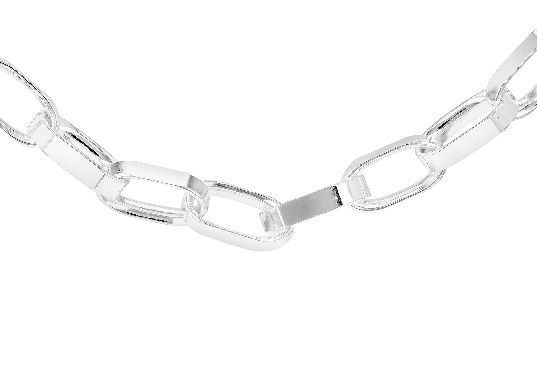Designed for those who embrace contemporary edge and striking style and crafted from premium sterling silver, this distinctive chain features oversized paper link elements that create a sculptural, modern aesthetic. Each chunky link catches and reflects light beautifully, delivering an eye-catching play of shadows and brilliance that commands attention.